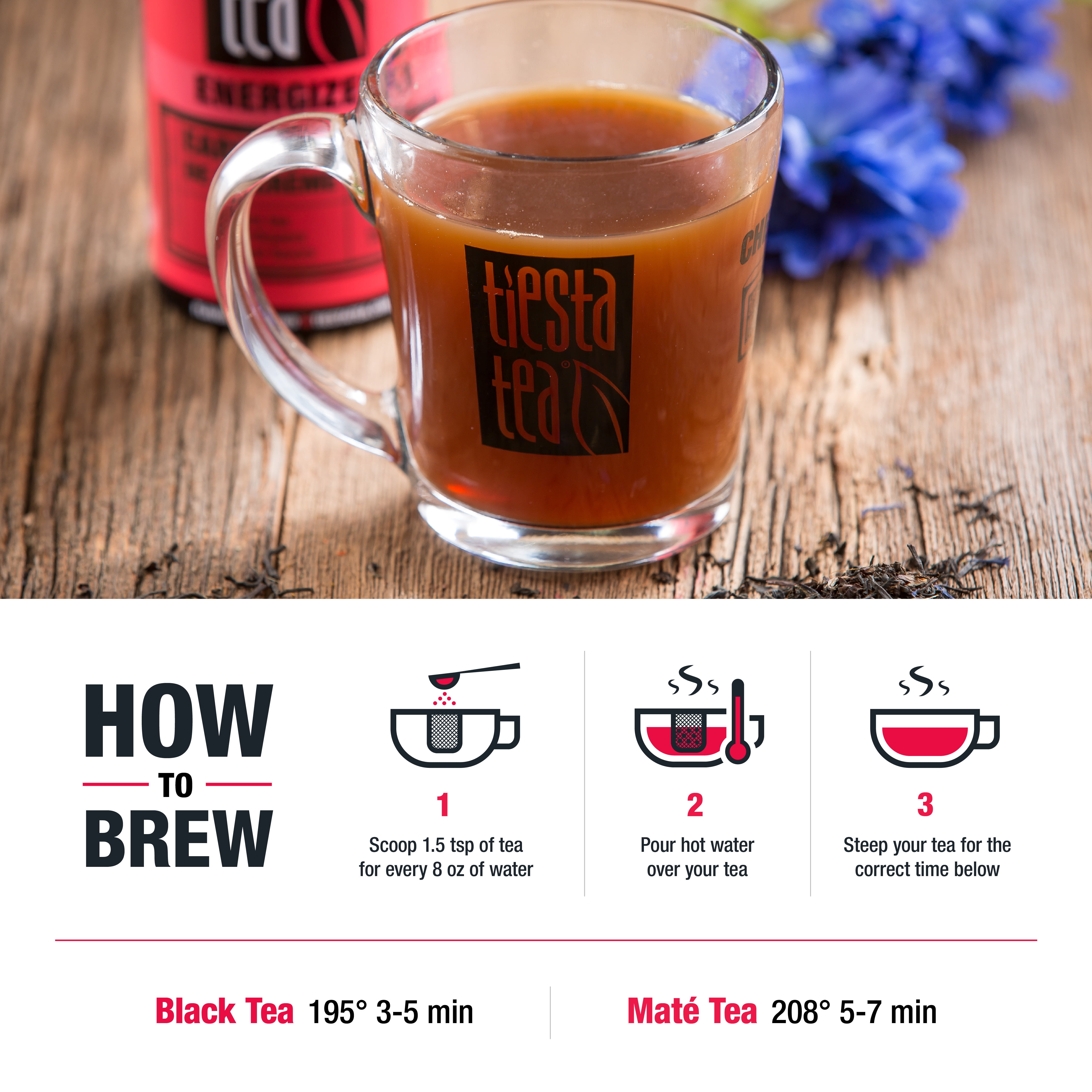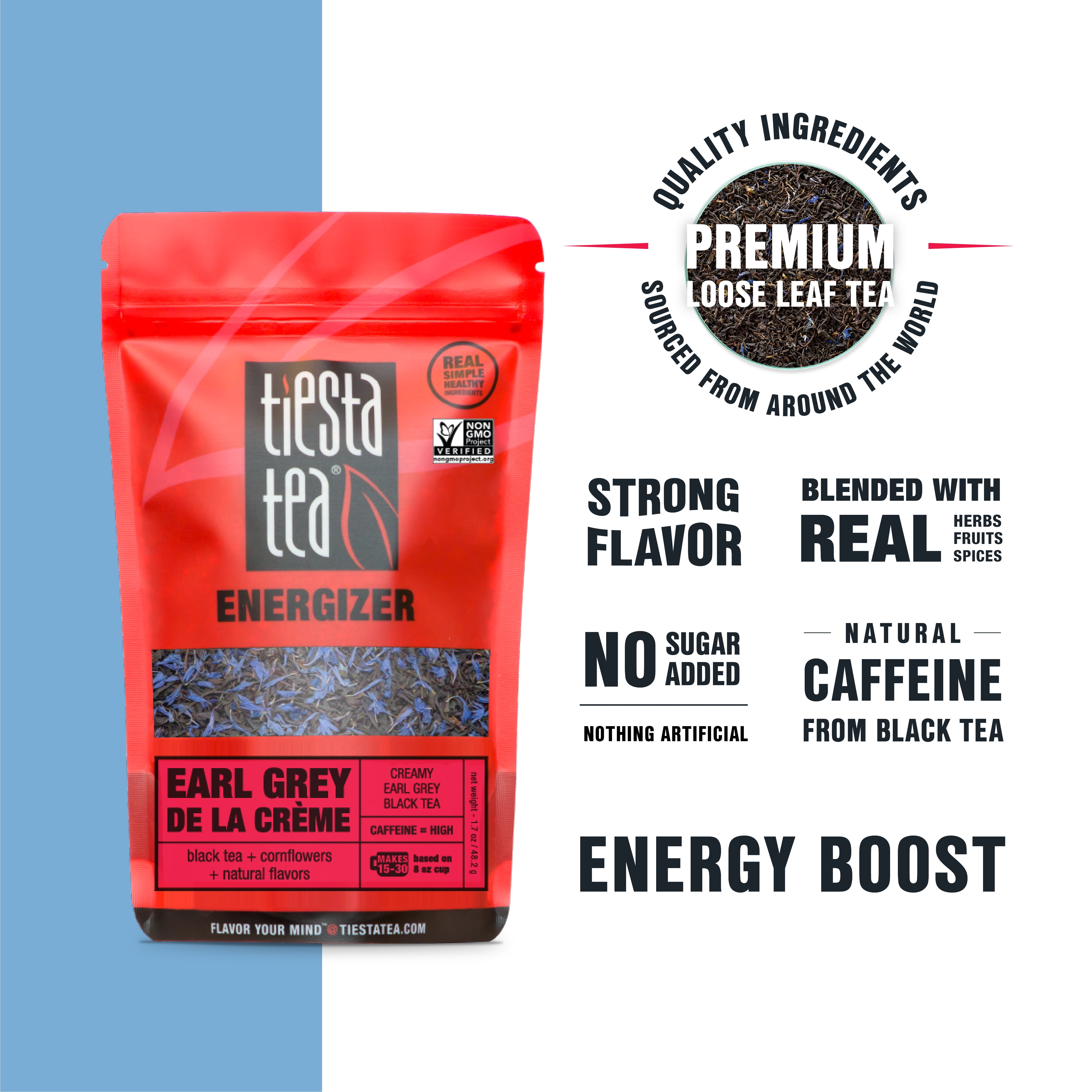 - Energizer blends contain black, maté & chai teas