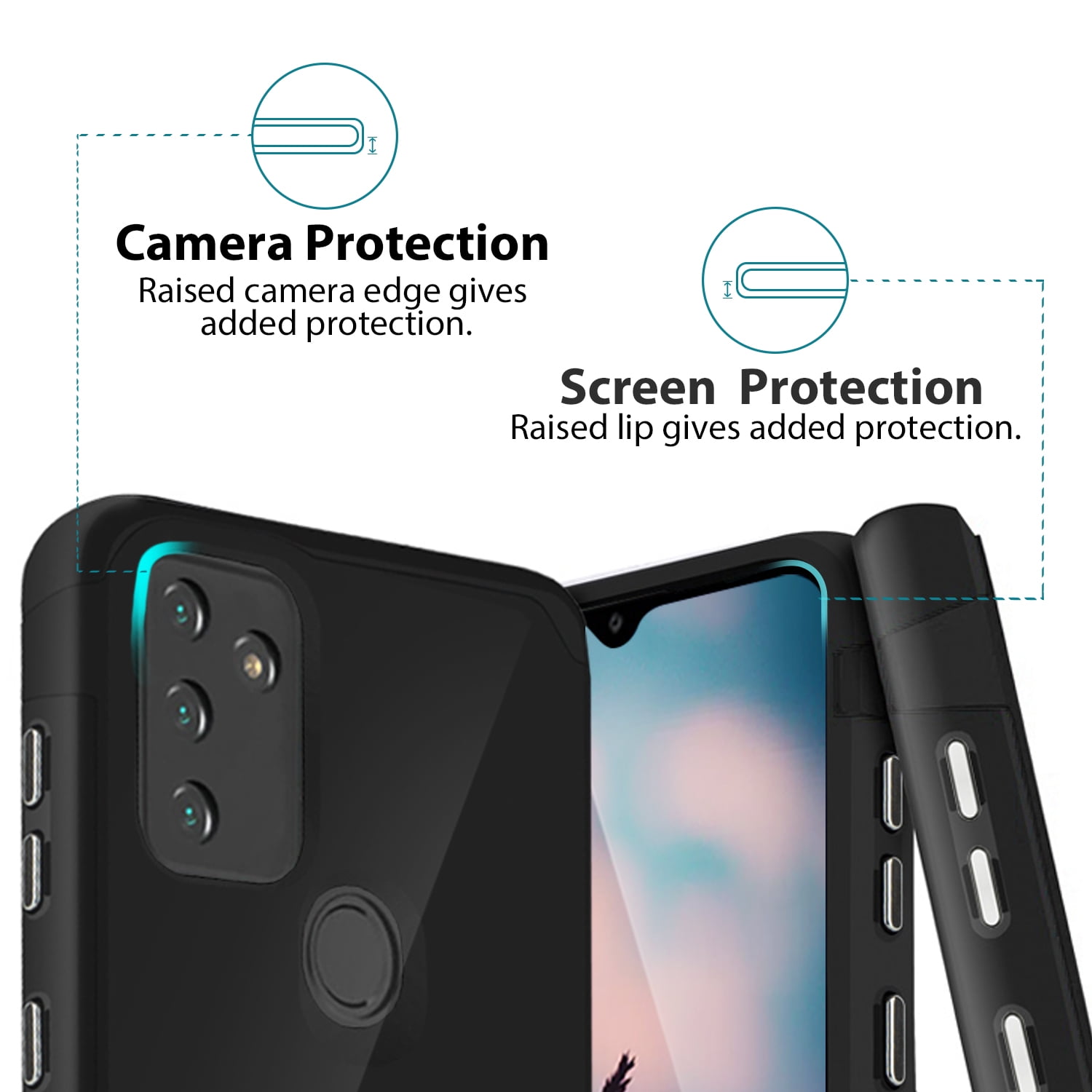 - The case also offers great camera protection with a raised lip to avoid scratches if placed on rough surfaces. Front raised lip gives added protection for the screen of your phone