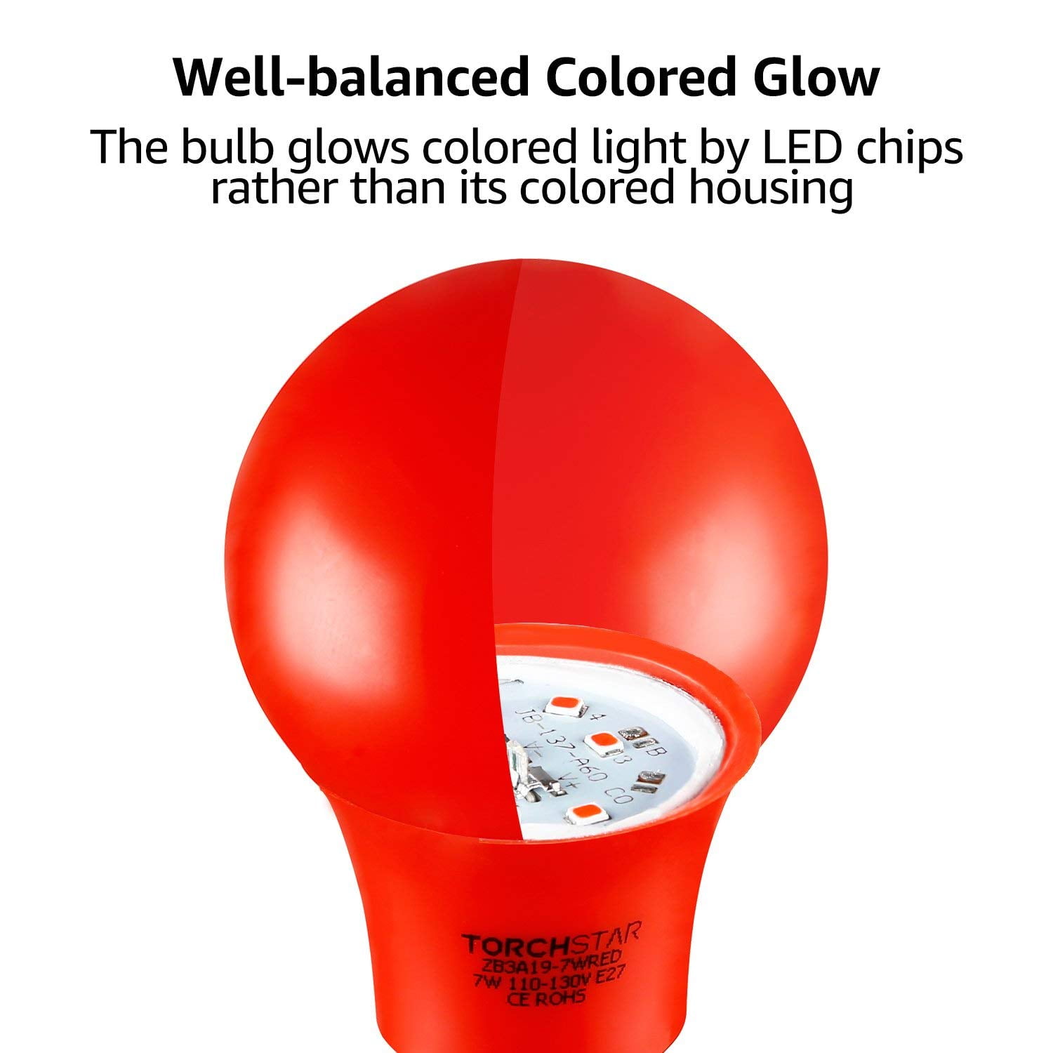 TorchStar Red LED A19 Colored Light Bulb, 7W, Medium E27 Base, for Porch, Patio, Backyard, Entry Way