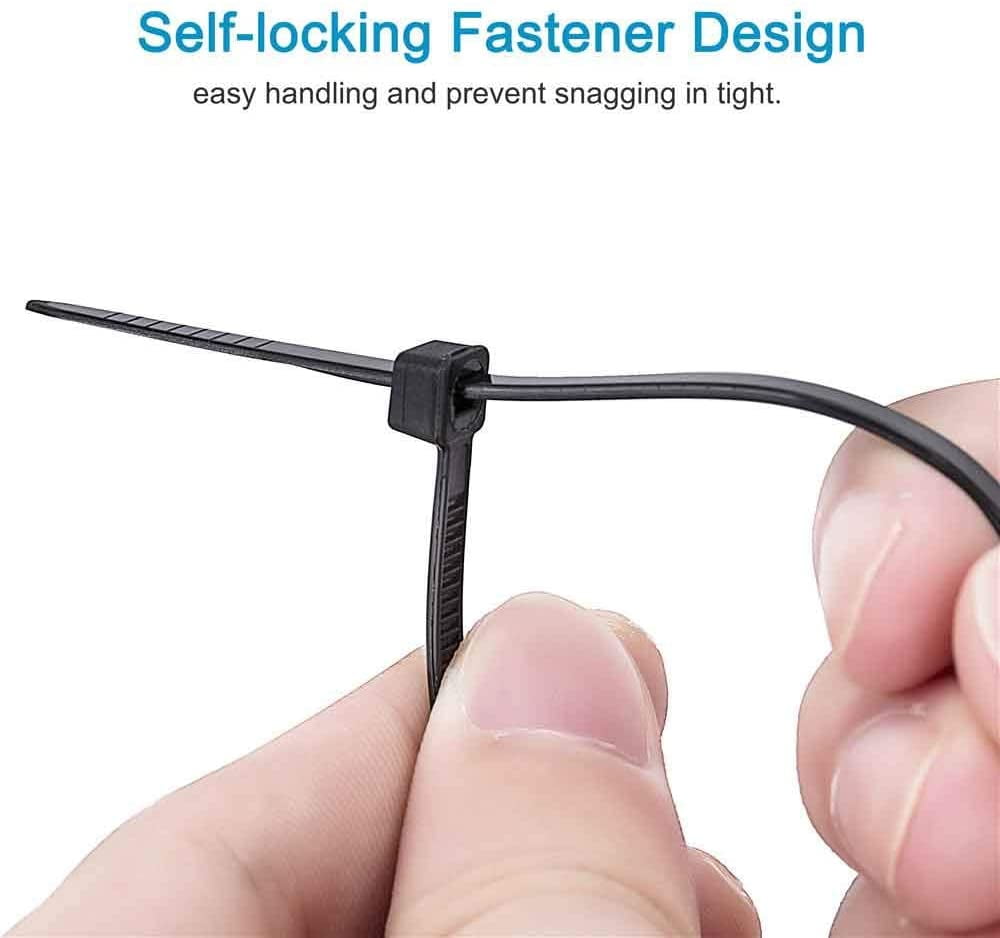 The package contains: 200 Premium quality black nylon cable ties