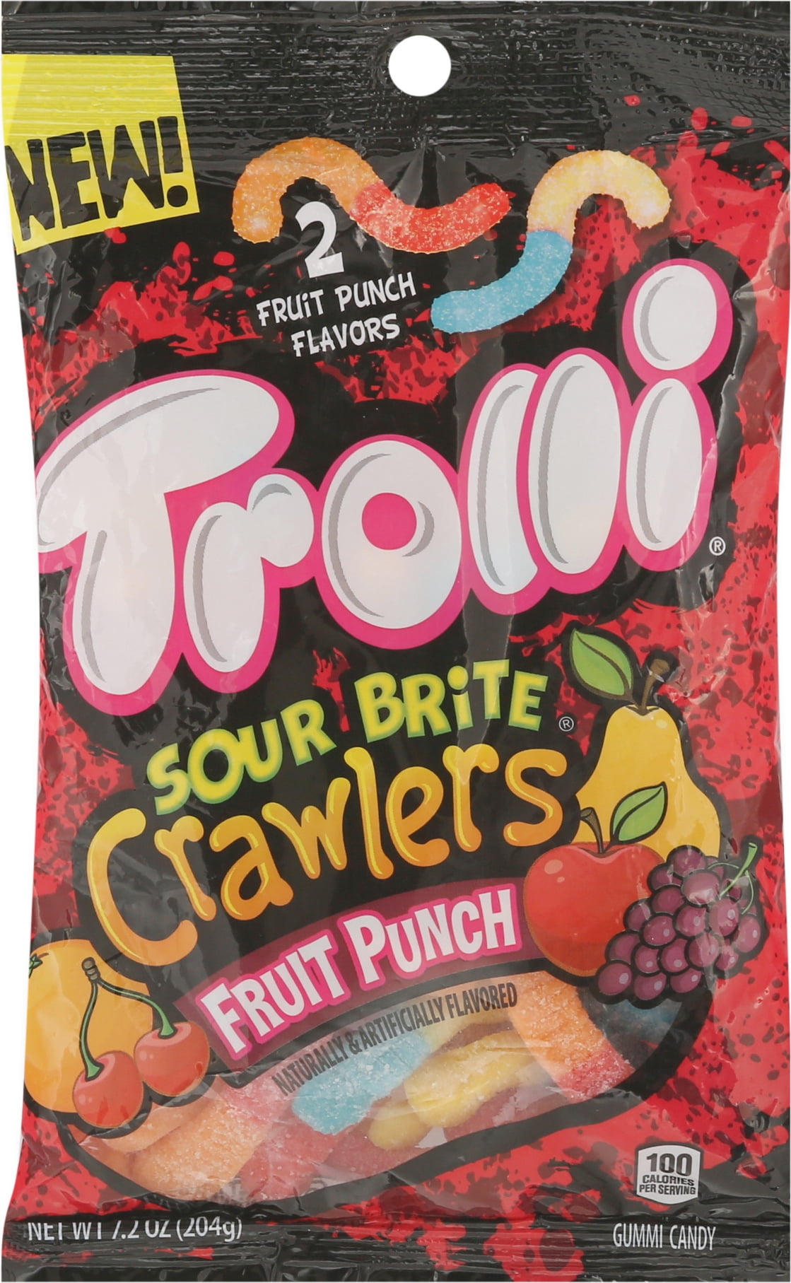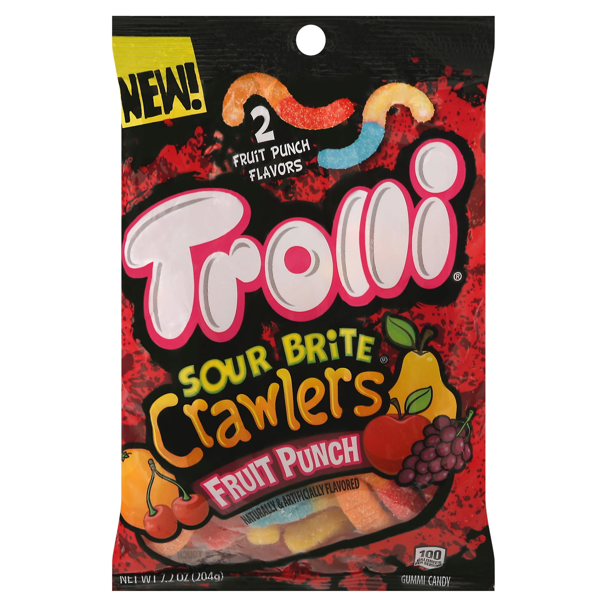 - TROLLI FRUIT PUNCH SOUR BRITE CRAWLERS: Trolli sour gummy worms with a sugar coating pack a punch of tangy sweetness in weirdly-awesome fruit punch flavor combos.
