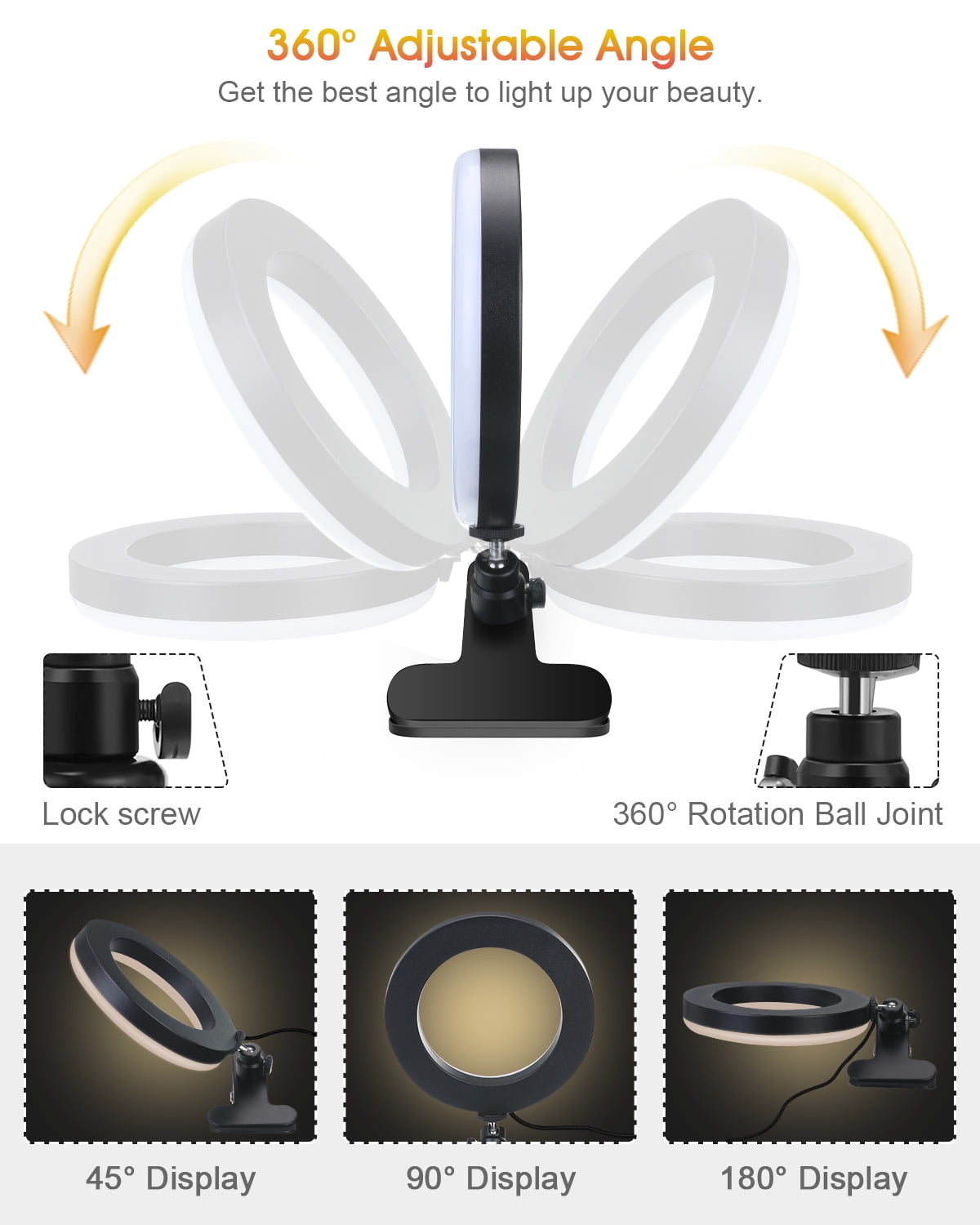Video Conference Light, 6.3 inches LED Selfie Ring Light kit with Clamp Mount, Dimmable LED Ring Light