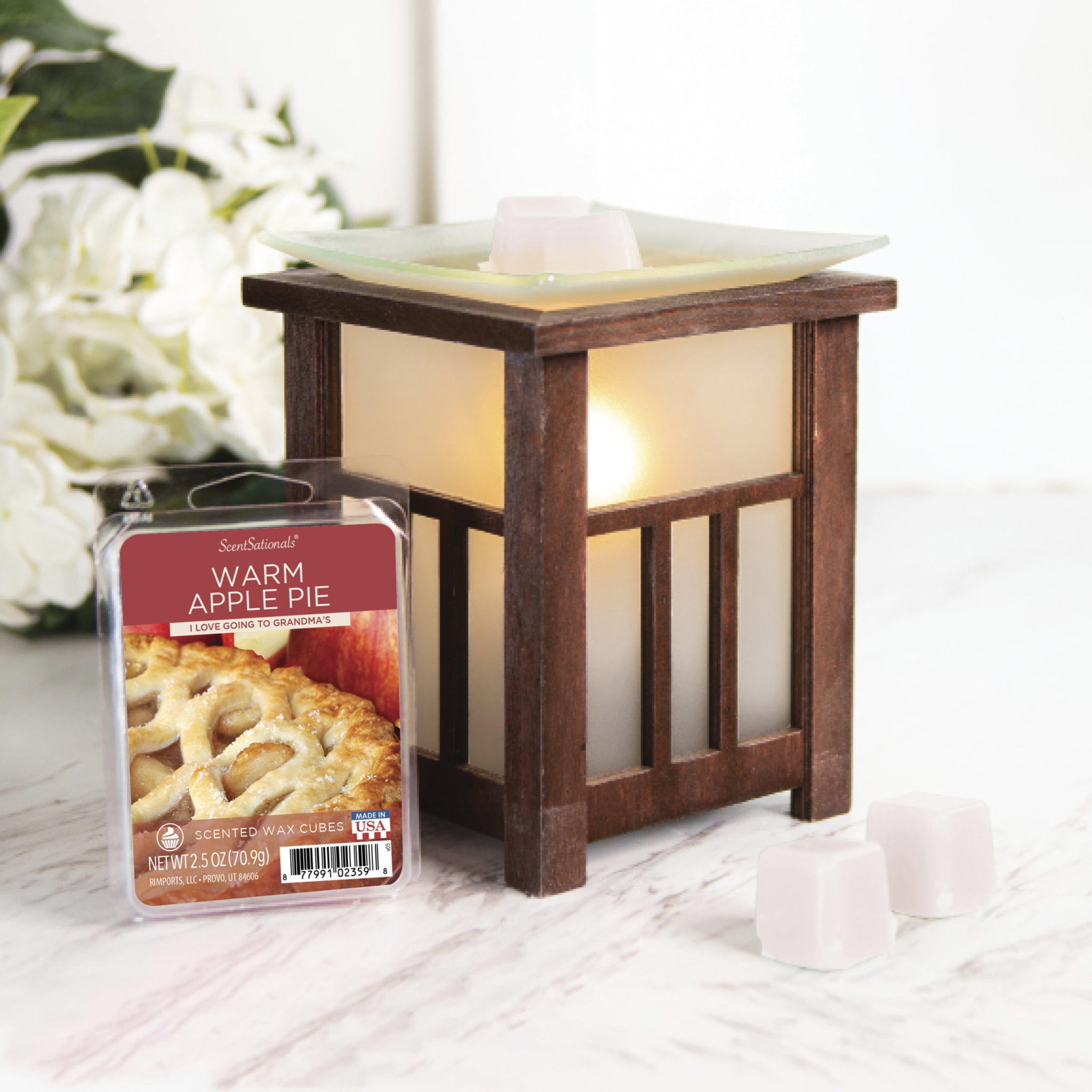 ScentSationals 2.5 oz Warm Apple Pie Wax smells of slow-mulled apple and pumpkin fruit baked between flaky all-butter pastry layers dusted with ground cinnamon, golden nutmeg, and aromatic clove sprinkled with candied brown sugar. ScentSationals 2.5 oz Warm Apple Pie Scented Wax Melts will fill your home with a rich and soothing aroma as soon as they begin to melt. Combine your favorite Scentsationals wax melt fragrances to create custom blends. Wax Melts are for use in an electric wax warmer and release a soothing highly fragrant scent into the air immediately upon melting. They are ideal for spreading a relaxing scent and welcoming atmosphere throughout your home. Simply break off a piece and add it to your favorite electric wax warmer.