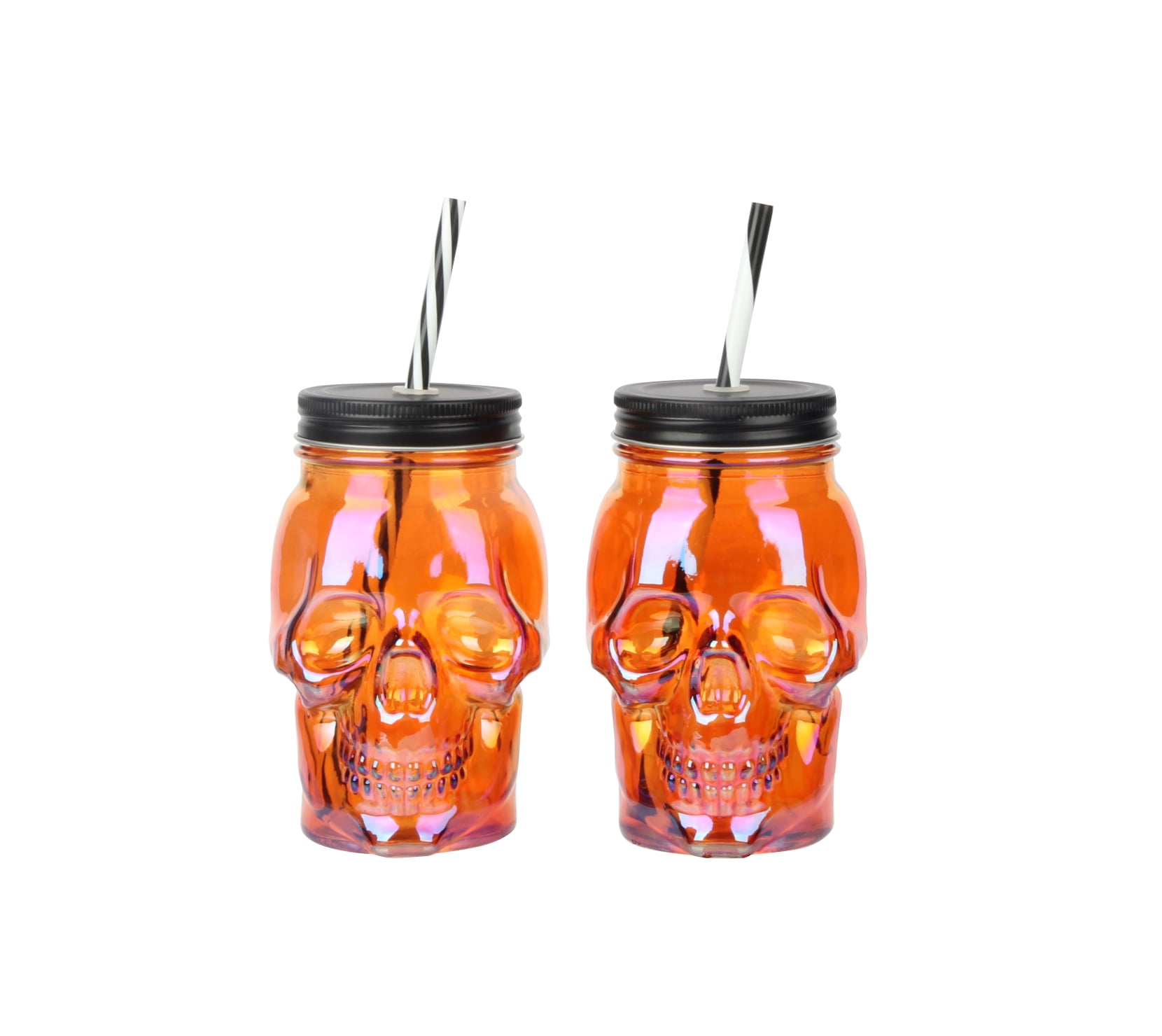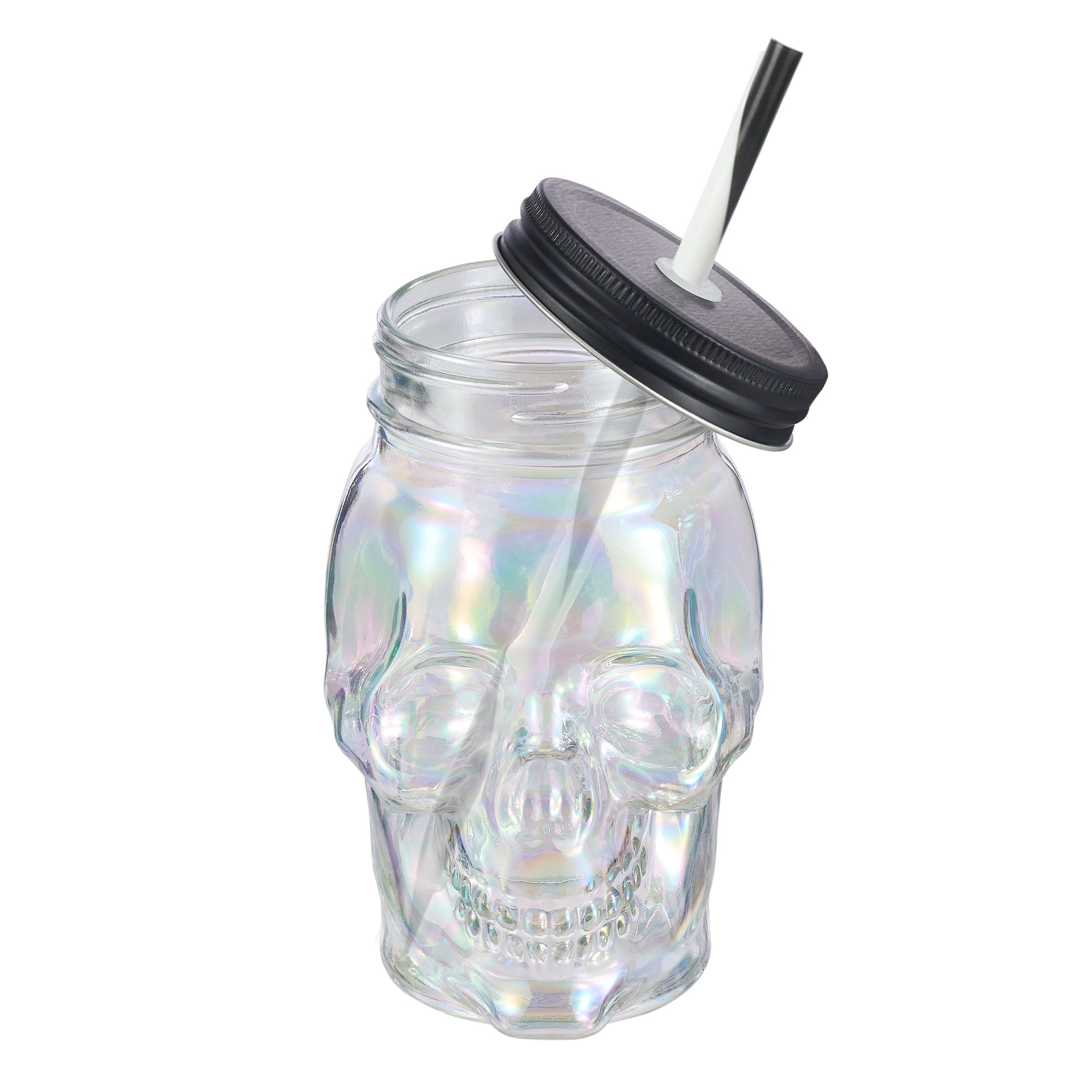 Make a hair-raising Halloween party deliciously spooky with the Way To Celebrate Glass Skull Sipper with Lid and Straw. This sipper is perfect for up to 18 ounces of the bone-chilling drinks that are served during the spookiest season of the year. The twist-on top keeps drinks from spilling while the reusable straw allows you to sip throughout the night. Have the Way To Celebrate Glass Skull Sipper with Lid and Straw for all your Halloween party guests to ensure everyone stays hydrated For cold beverages only.