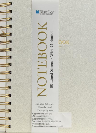 Wirebound memo book for both professional and academic needs. Cardboard cover and black wire. Ideal for meeting and lecture notes. Design subject to change. One-hole punched at top for hanging. Book/Pad Binding Type: Wirebound Book/Pad Binding Edge: Top Book/Pad Sheet Size: 3 x 5 Book/Pad Subjects/Sections: 1.