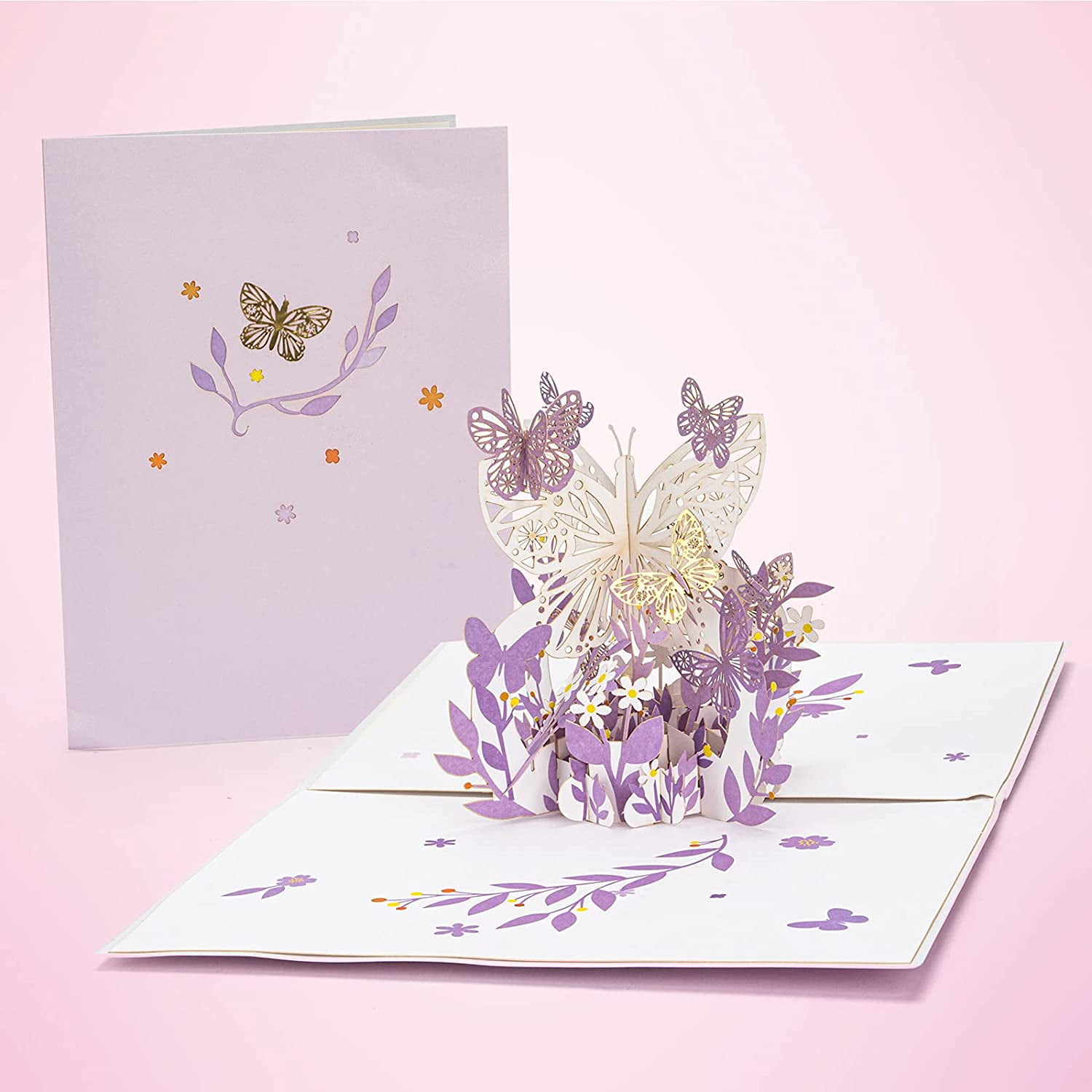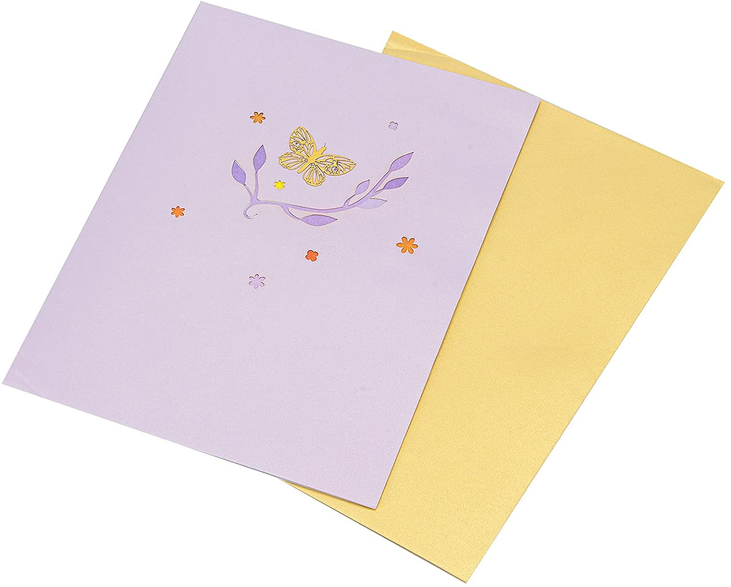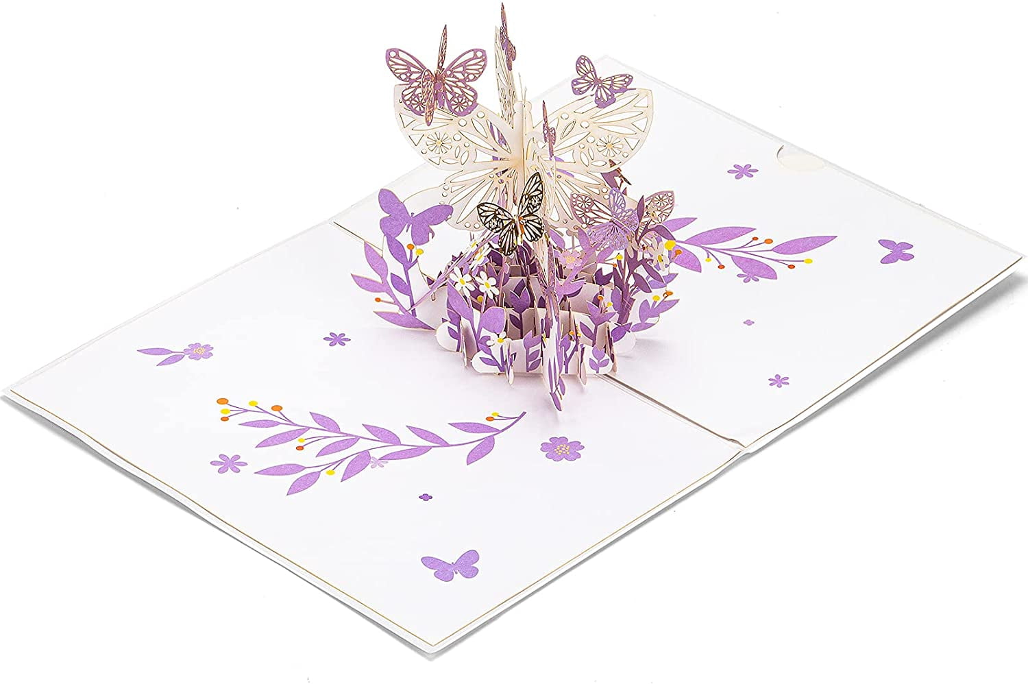Yadiana Purple Butterfly Pop Up Card,Butterfly Flower Basket 3D Greeting Cards,Birthday Pop up Cards,All Occasion- Light purple cover with beautiful hot stamping golden printing butterfly, Upon opening the card you’ll see magnificent beauty of butterflies, sure to brighten up someone’s day. All cards come with a blank envelope and blank on the inside, you can customize it perfectly for someone special to show your sincere love. Every Made from premium card stock paper for elegance and extra durability.