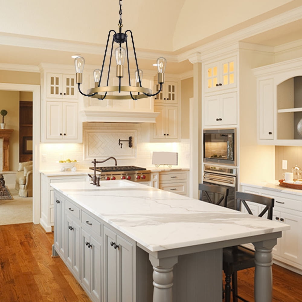 Wellmet 5 Light Rustic Farmhouse Wagon Wheel Chandelier With Gold Finish