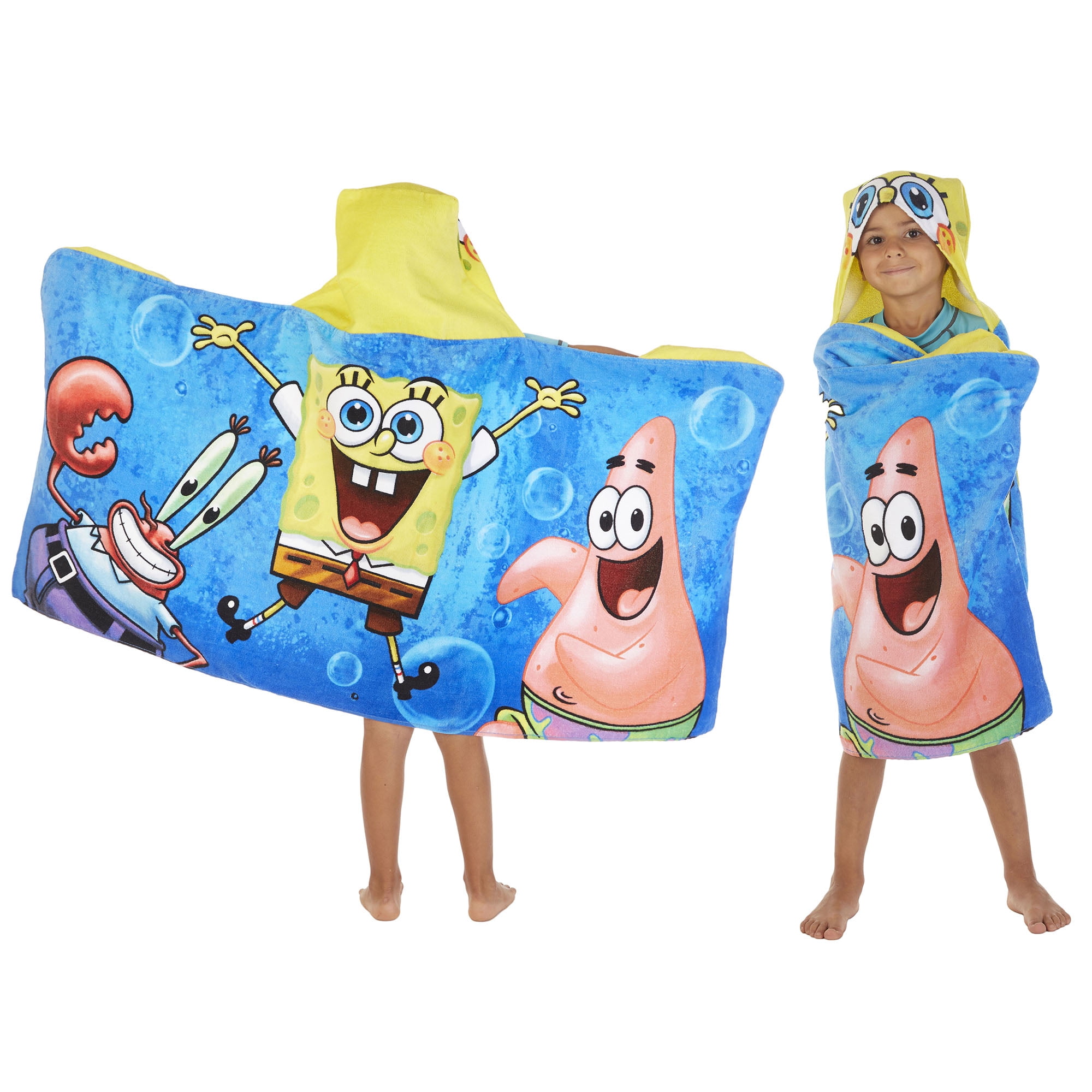 SpongeBob SquarePants Kids Bath Hooded Towel, Cotton, Blue, Nickelodeon