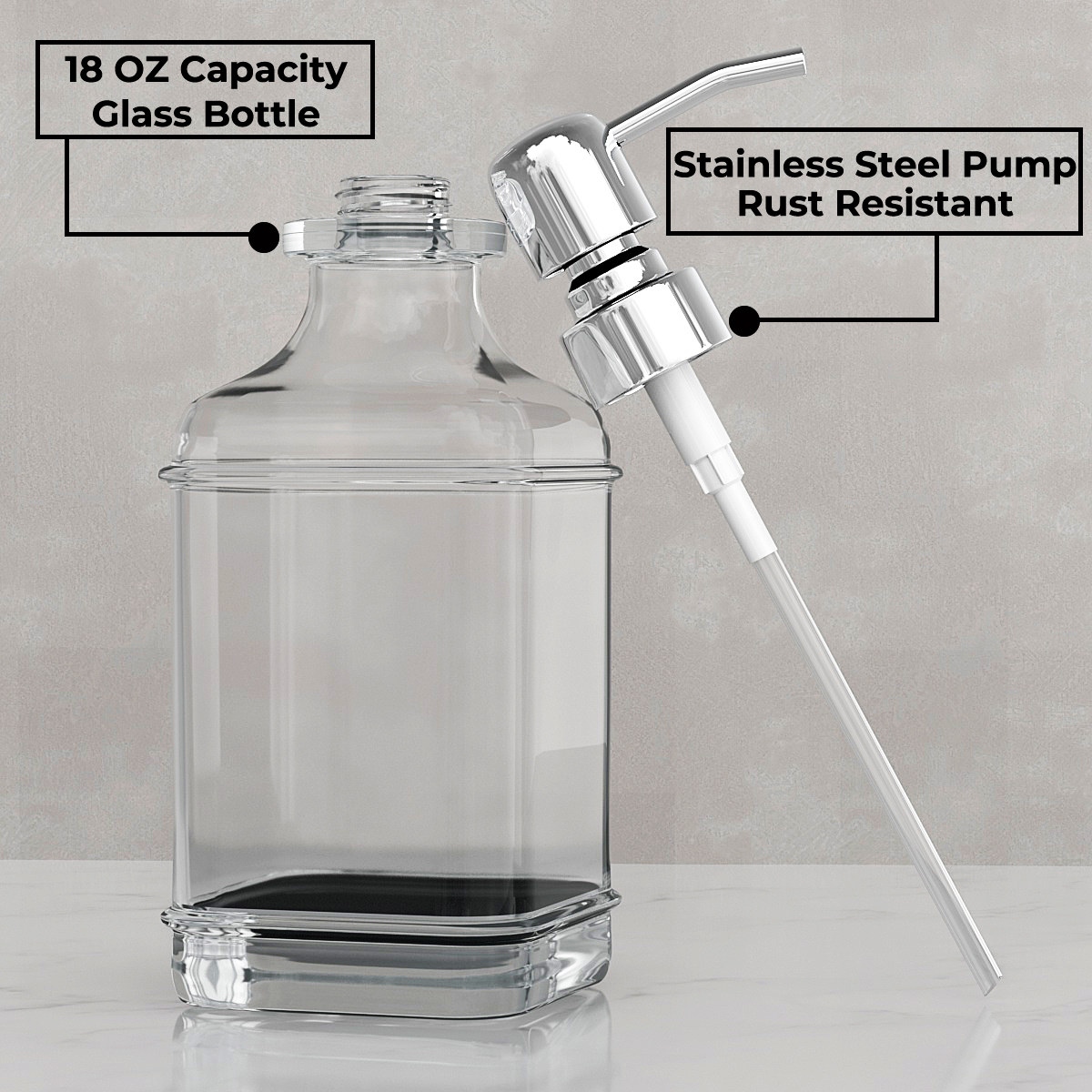 2 Pack Soap Dispenser, GLADPURE 18 oz Antique Thick Glass Soap Dispensers-Silver