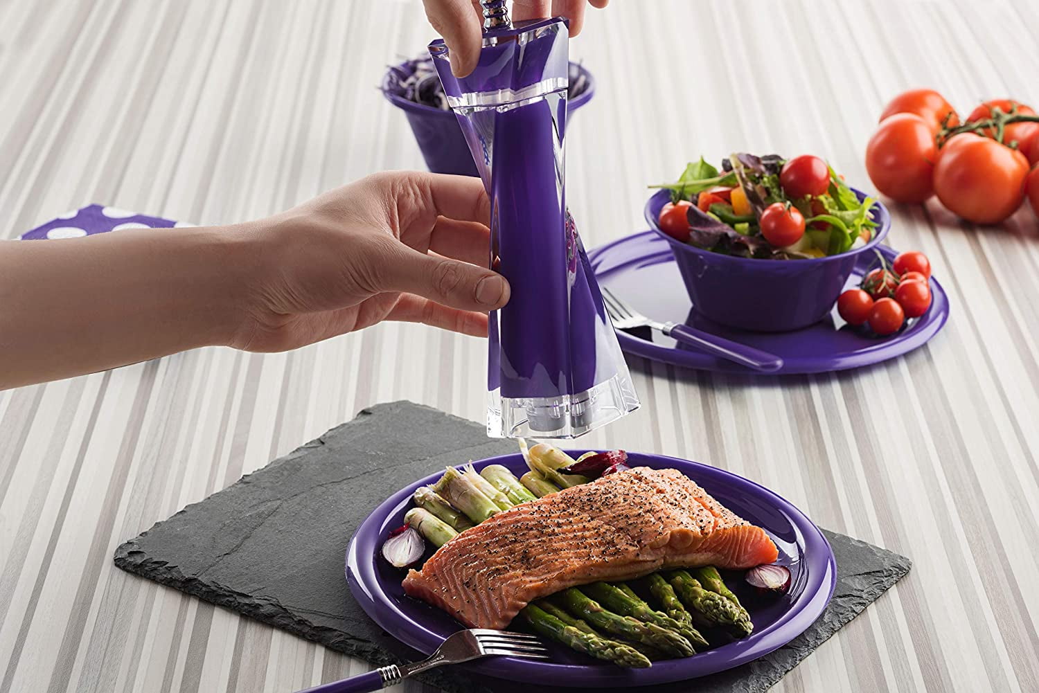 MITBAK Acrylic Purple Salt and Pepper Grinders Set | Sea Salt and Pepper Mills Easy to Use And Equipped with Adjustable Coarseness And Ceramic Mechanism