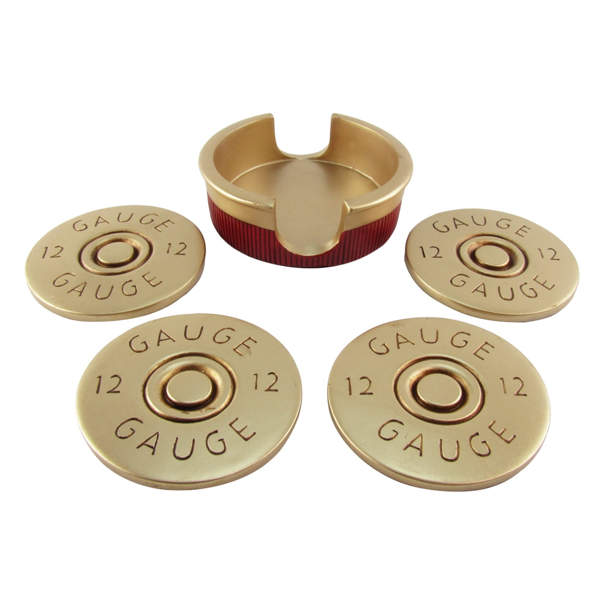 (Set/4) 12 Gauge Shotgun Shell Styled Resin Drink Coasters w/ Matching Caddy