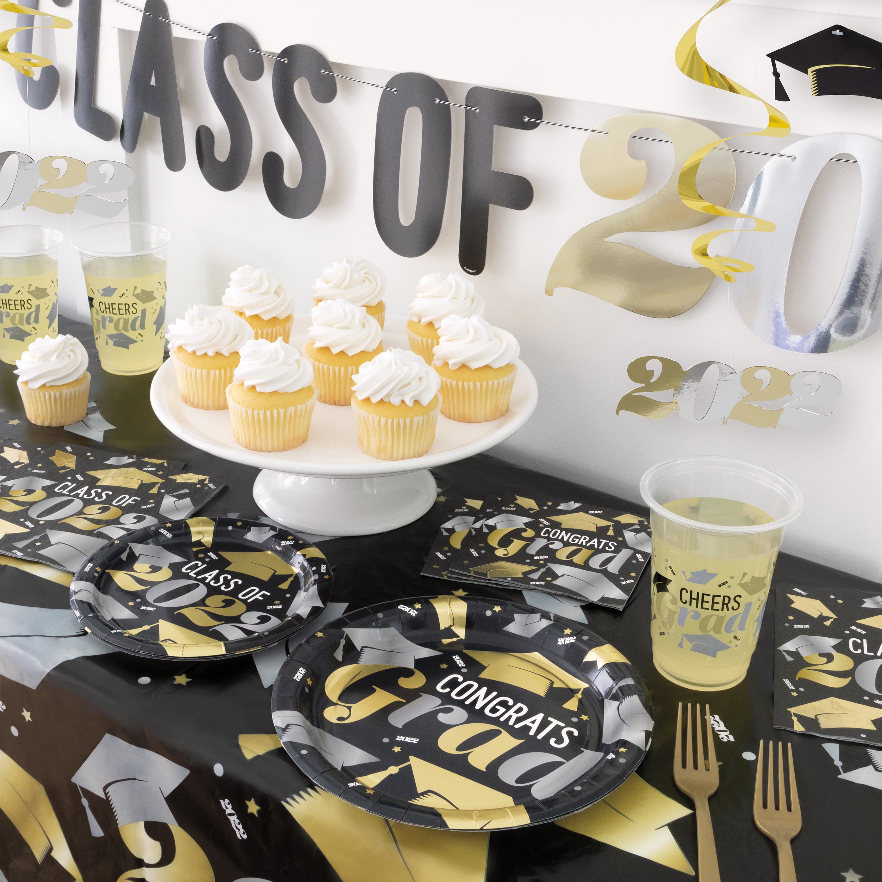 Gold & Silver 2022 Graduation Party Tableware and Decoration Kit for 16 Guests