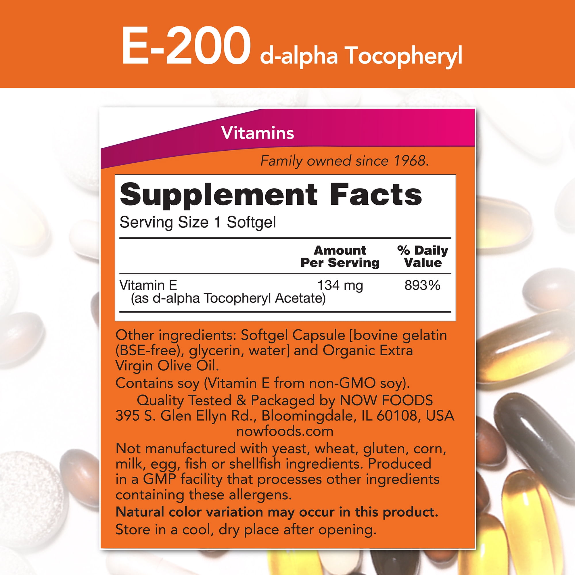 NOW Supplements, Vitamin E-200 IU, D-Alpha Tocopheryl, 100 Softgels