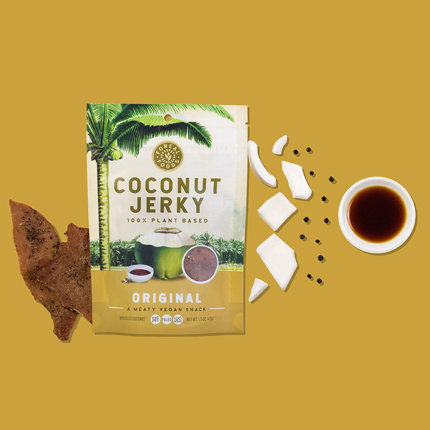 Vegan Coconut Jerky – Original Flavor 6-pack (Paleo, Vegetarian, Keto, Gluten Free, Soy Free, Natural, Plant Based, Clean, Whole 30, Low-Carb, Non-GMO, Healthy Snack, ) – 6 bags – 1.5oz