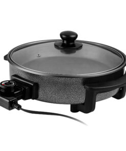 Ovente 12 Inch Electric Kitchen Skillet with Nonstick Aluminum Coated Grill Pan & Glass Lid Cover, Indoor Countertop Cooking Pan with Temperature Control & Handle Compact Easy Clean, Black SK11112B