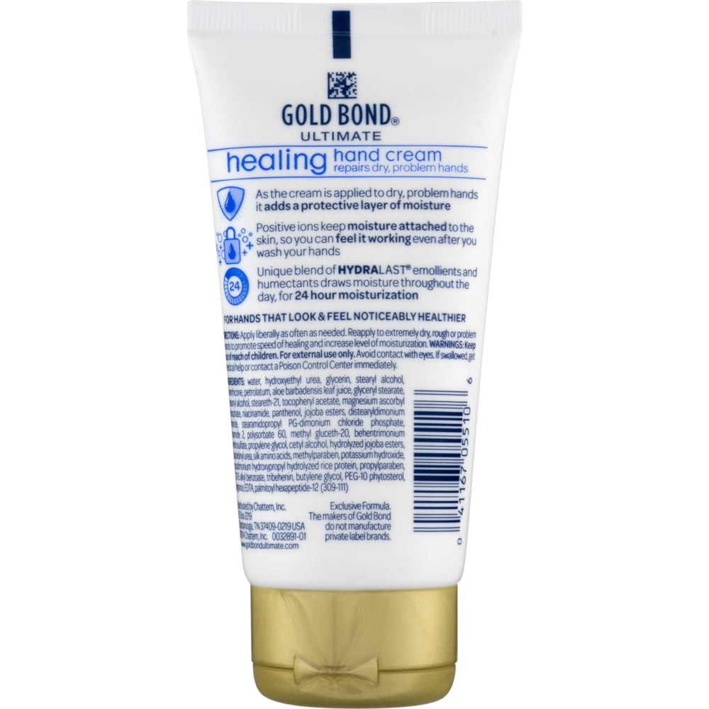 Your hands do so much, do something for them. Skin on the hands is exposed to the relentless wear and tear of sun, cold, heat, and abrasion. Gold Bond ultimate healing hand cream nourishes and repairs dry, problem hands by adding a protective layer of moisture to restore smooth, healthy looking skin. Positive ions in the formula keep moisture attached to skin, so you can feel it working even after hand washing. This lotion contains seven intensive moisturizers, as well as vitamins B, C and E. Gold Bond ultimate healing hand cream is dermatologist tested, hypoallergenic, and non greasy all with a light, fresh scent for your dry, rough or problem hands.