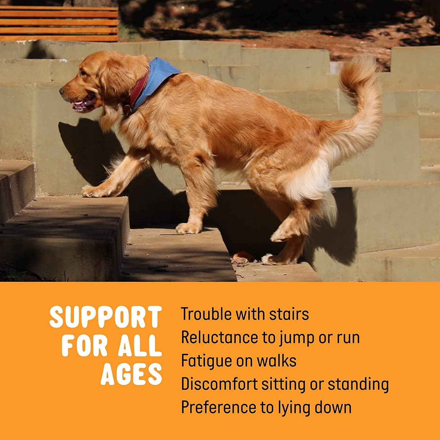 A daily dose of our extra strength supplement with Glucosamine for dogs, Chondroitin, MSM, and Turmeric for dogs will boost mobility and overall joint health and let your dog stay active and happier at all stages of life.