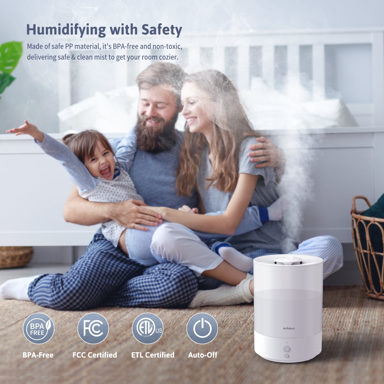 - 【Humidifying with Safety】 Enhanced with ultrasonic technology, the purifier produces cool mist to prevent accident scald, which makes it a perfect family-use humidifier. Made of BPA-free & non-toxic PP material and has passed FCC and ETL test, it provides safe humidification for your comfort & relaxation.