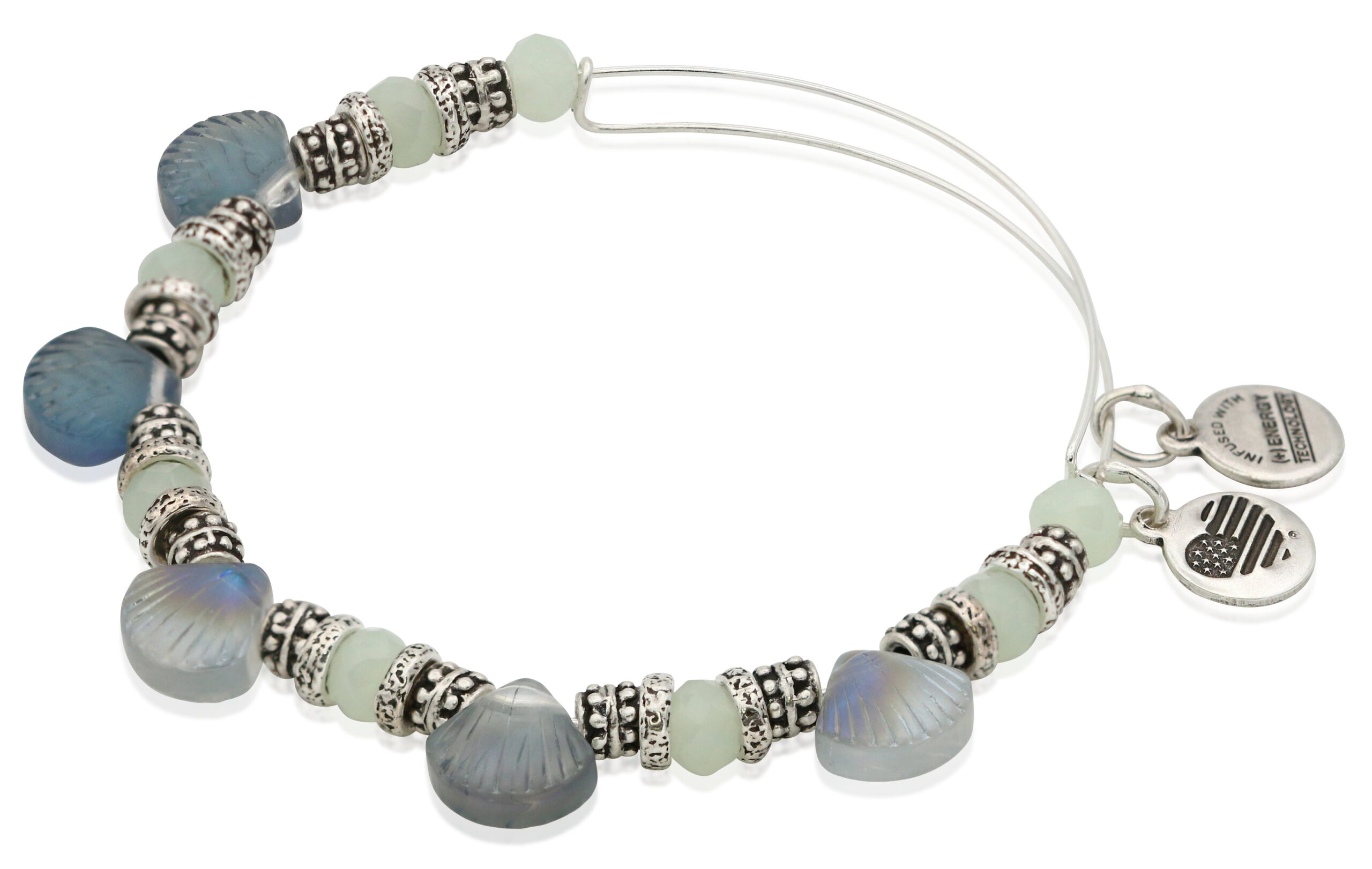 All life is born and sustained from water. Of all the elements water is the most mysterious and vast. Connected with the moon it emits fierce feminine energy that stirs within us. Listen to the teachings of water: dive deep and know that youre supported no matter the current. Brass. Adjustable/pull closure. Approx 2 – 3.5 in diameter.Alex and Ani Seashore Charm Bangle Bracelet