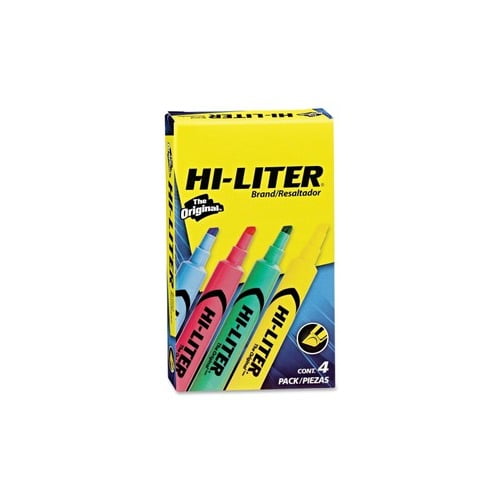 Avery Desk-Style, Assorted Colors, 4 Count (07749) Chisel Marker Point Style – Light Blue, Light Green, Light Pink, Yellow, Assorted – Yellow, Light Green, Light Blue, Light Pink Barrel – 4 / Box