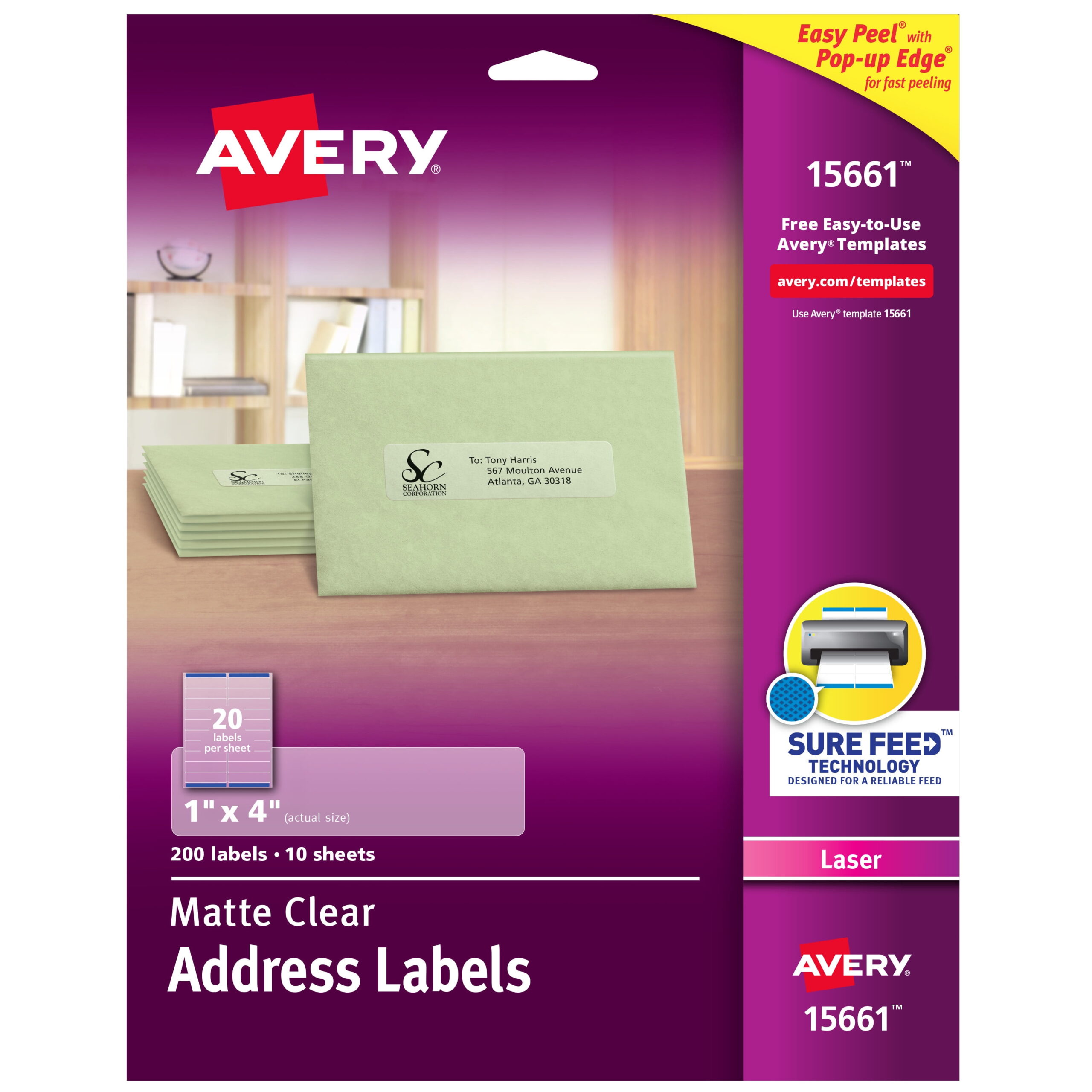 Avery Matte Clear Address Labels, Sure Feed Technology, Laser, 1′ x 4′, 200 Labels (15661)