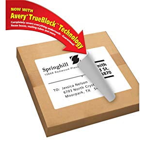 Avery Shipping Address Labels, Inkjet Printers, 25 Labels, Full Sheet Labels, Permanent Adhesive, TrueBlock (8165), White