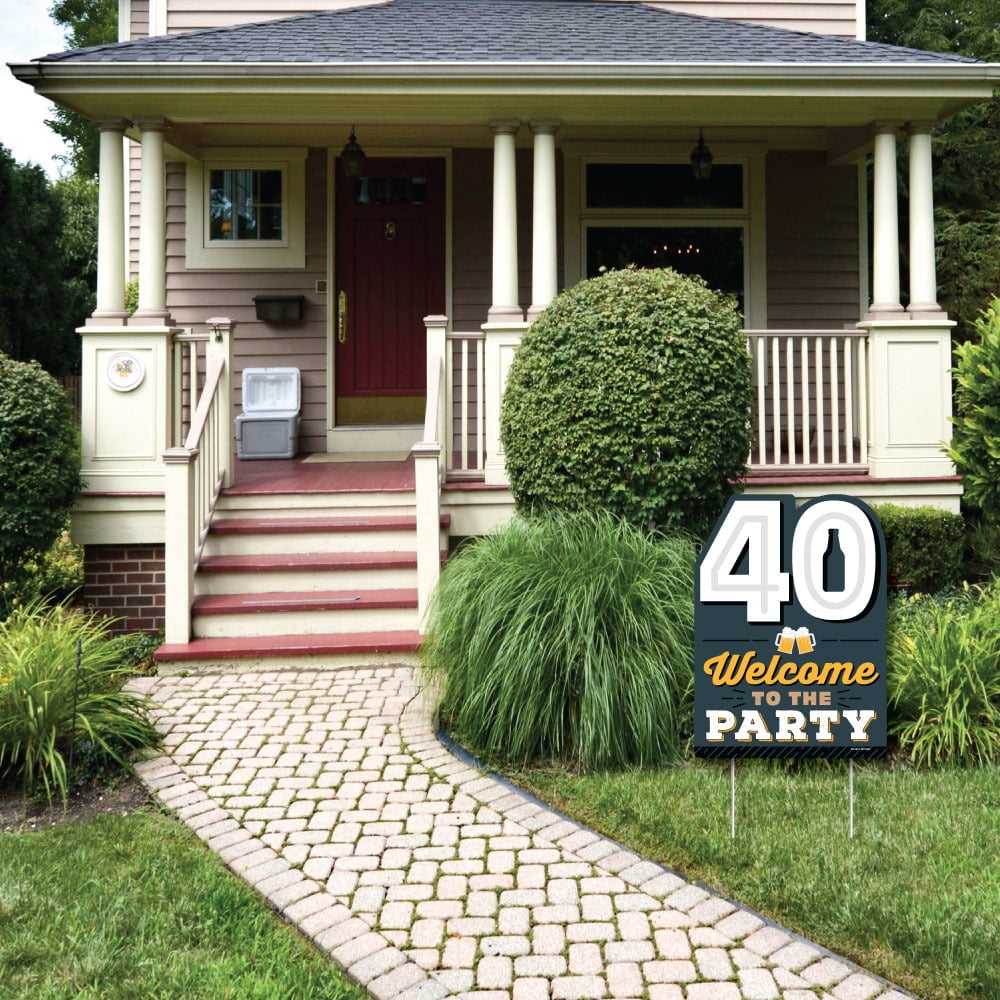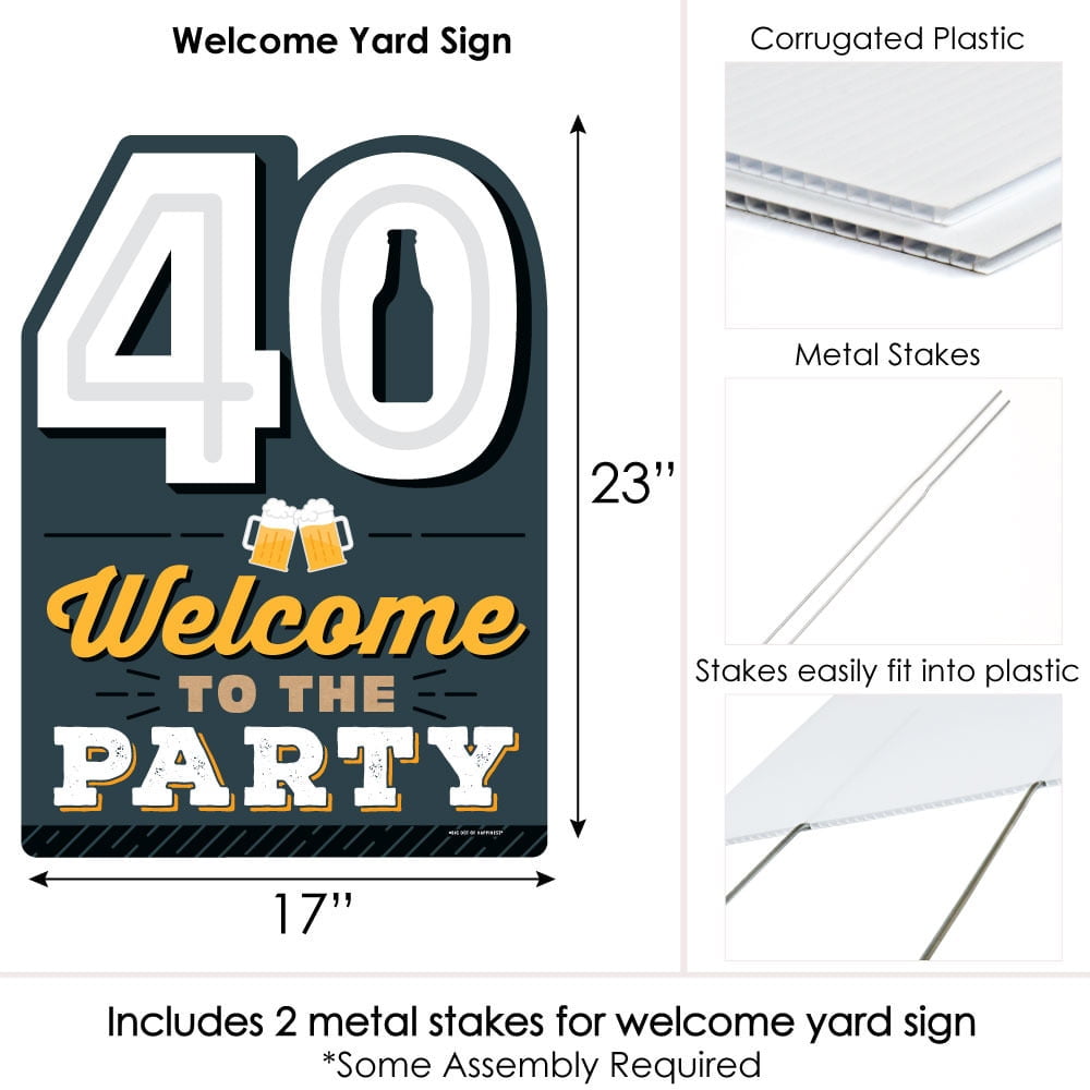 - Cheers and Beers to 40 Years Yard Sign Decoration INCLUDES 40, Welcome to the Party corrugated plastic yard sign and 2 sturdy stakes for displaying.