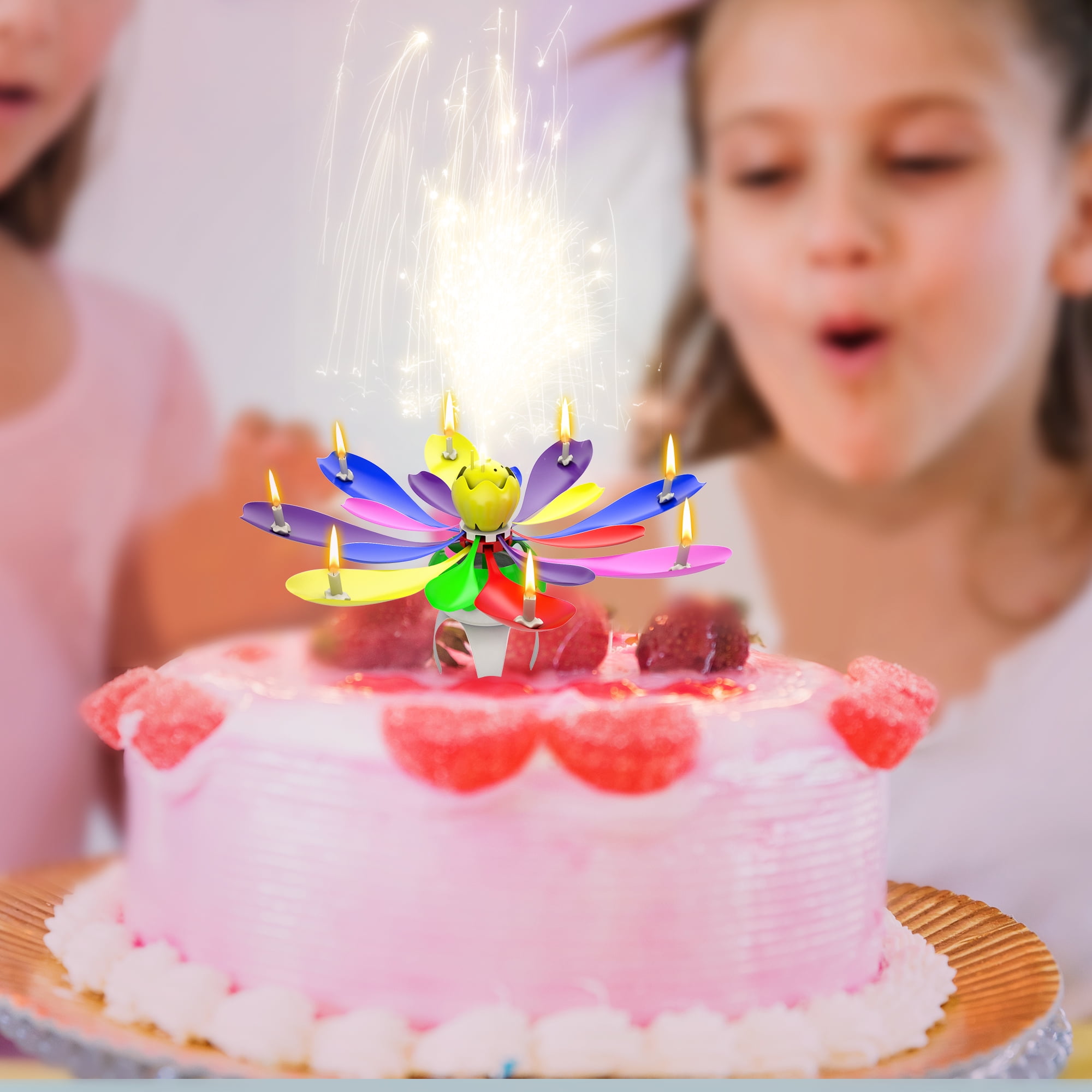 Birthday Cake Flower Candles with Happy Birthday Music Rotating Setup – Mix