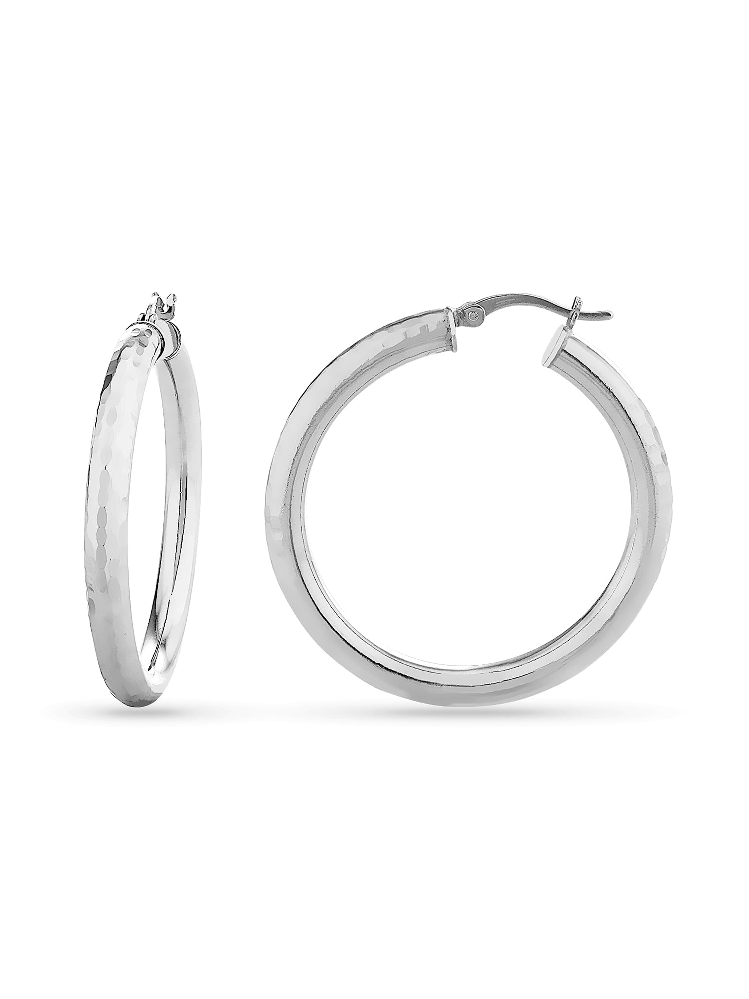 BRILLIANCE Sterling Silver Diamond Cut Hoop Earrings