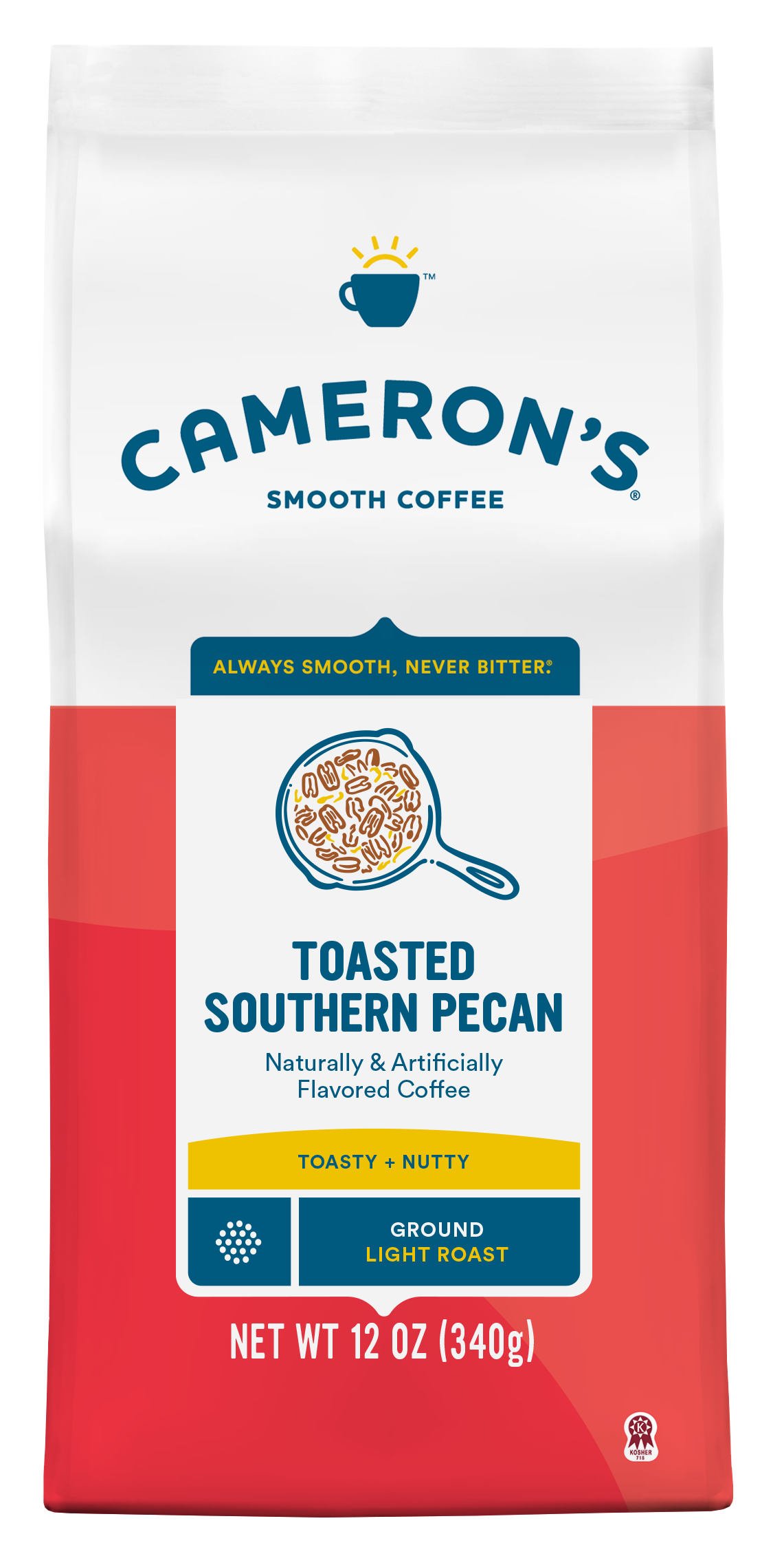 Cameron’s Coffee Flavored Toasted Southern Pecan Ground Coffee, Light Roast, 12 oz