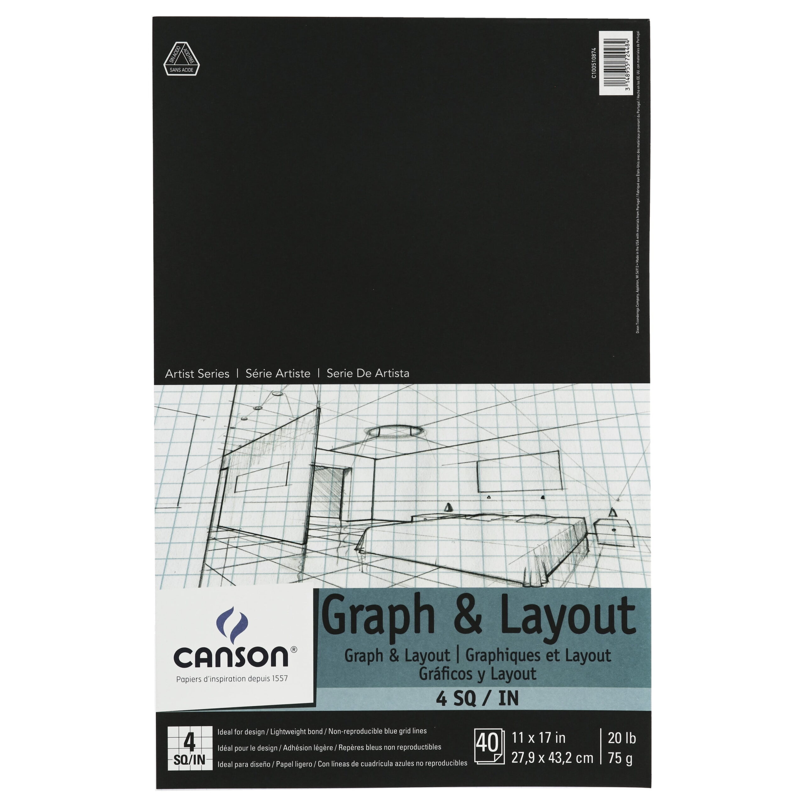 Canson Artist Series Graph & Layout Paper Pad, 40 Sheets, 4′ x 4′ Grid, 11′ x 17′