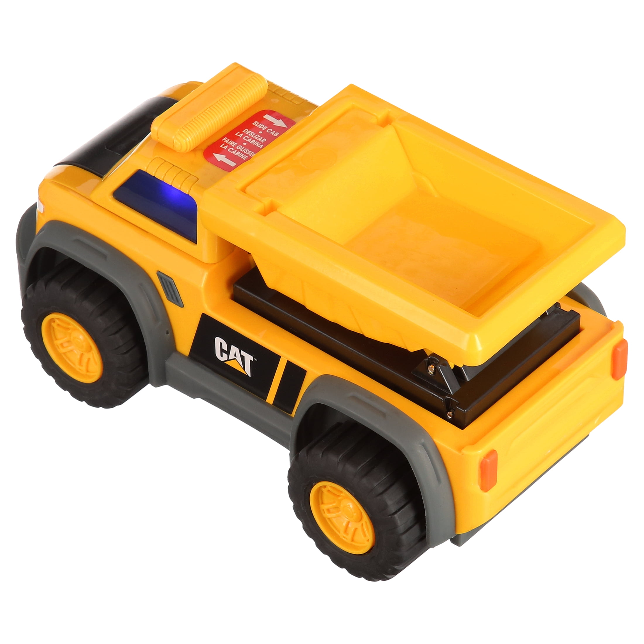 The Cat Constructor Dump Truck is a brand new addition to the Cat Toy brand. This innovative vehicle can easily convert from a Cat SUV to a Cat Dump Truck! The vehcile is kid powered freewhelling and has awesome Cat lights and sounds!