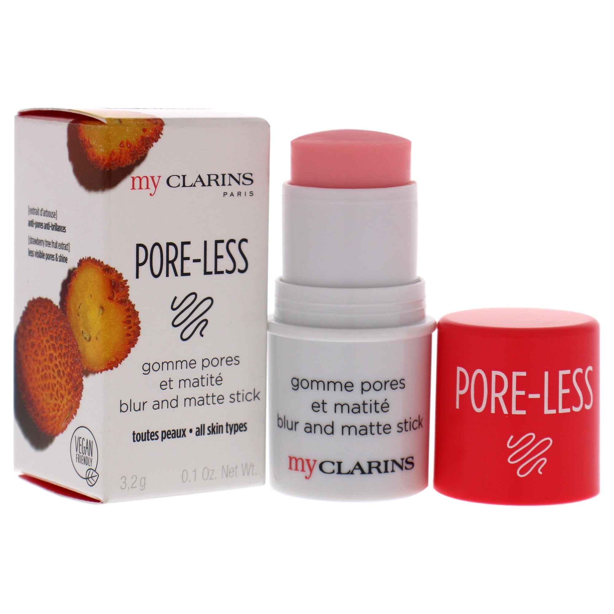 Design house: Clarins. Series: Pore-Less Blur & Matte Stick. Gender: Ladies. Category: Skin Care. SubType: Bases & Primers Stick. Beauty group: Face. Barcode: 3380810258288. A pale pink, oil-absorbing stick—with mattifying Organic Strawberry Tree Fruit extract—that blurs pores and takes down shine for a visibly smooth, matte complexion. Deliciously scented with notes of cotton candy, it glides over skin with a clear finish. Bring with you on the go for easy, targeted touch-ups throughout the day. Clarins Ladies Pore-Less Blur & Matte Stick Stick Skin Care 3380810258288.