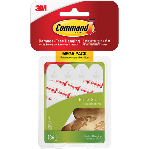 Command Poster Strips Mega Pack makes decorating quick and easy. They’re perfect for hanging schedules, posters, calendars and pictures without frames, or as an alternative to double-sided tape. They stick to wood, tile, metal and painted surfaces yet they also come off, leaving behind no holes, marks, sticky residue or stains.