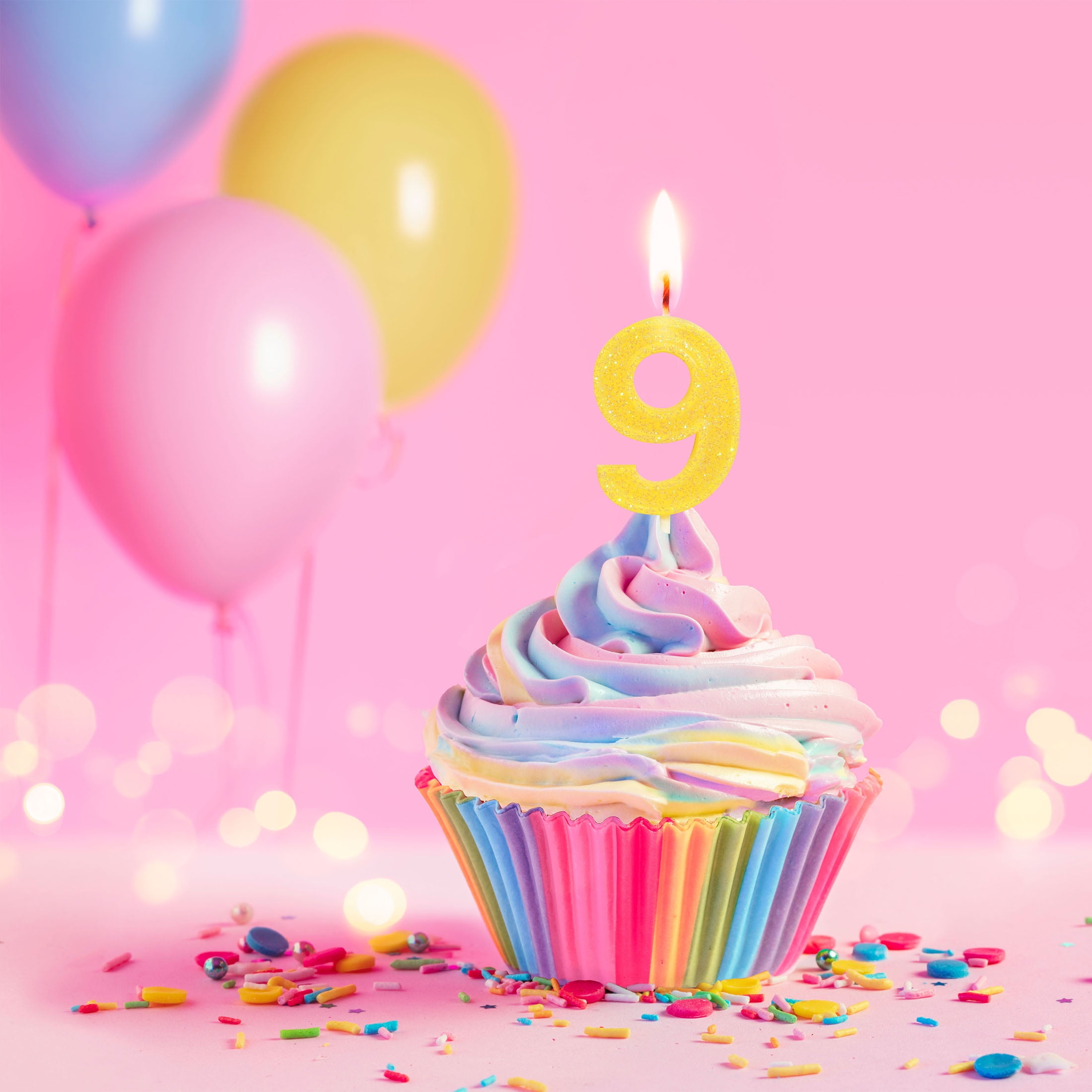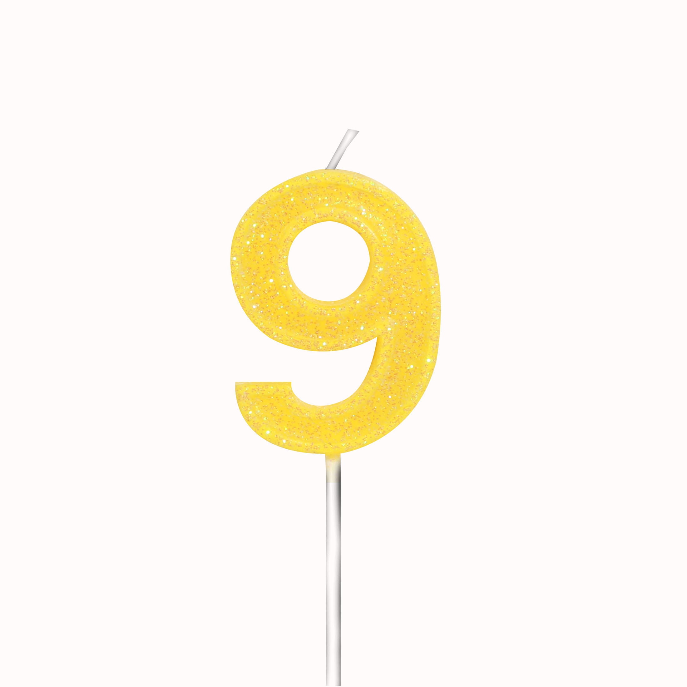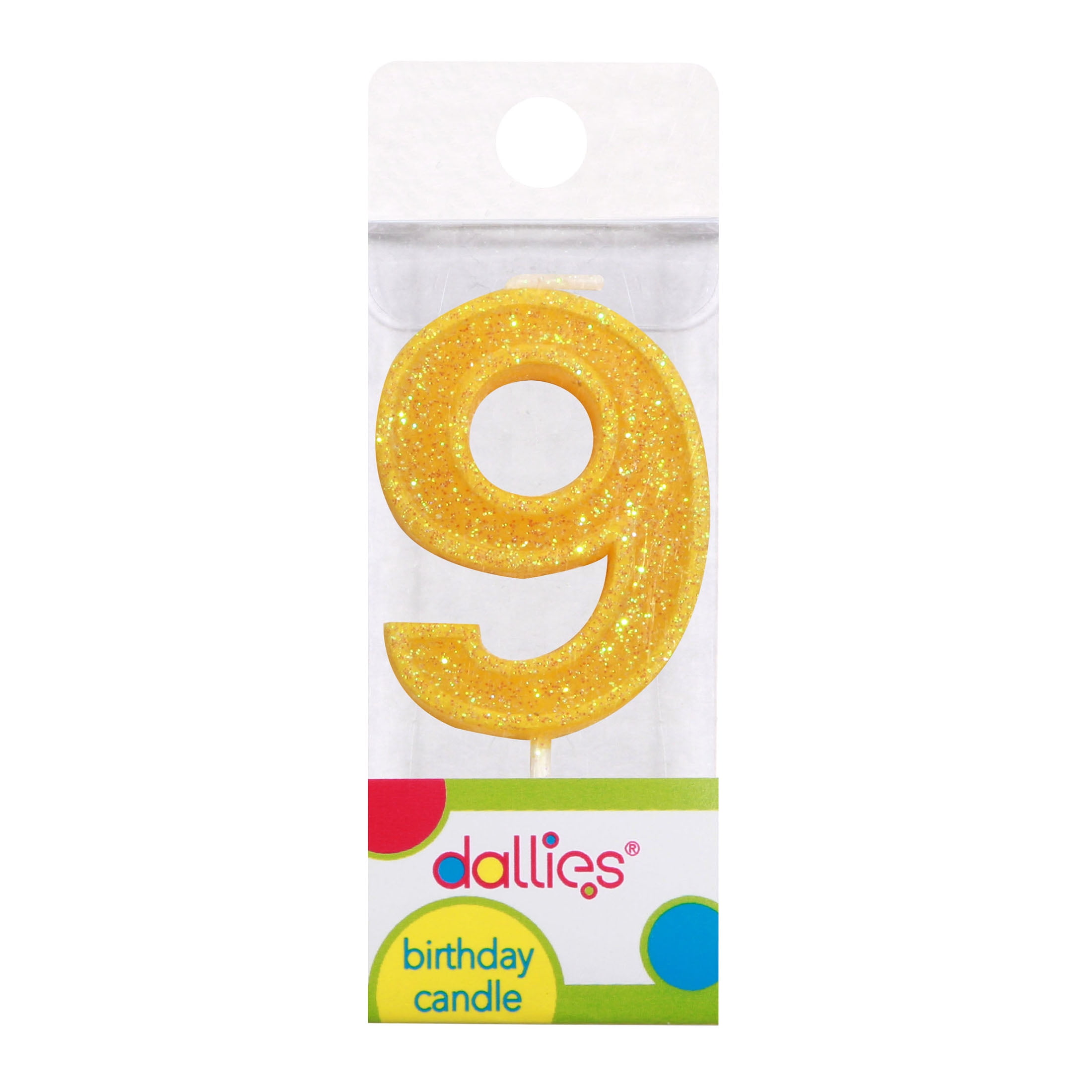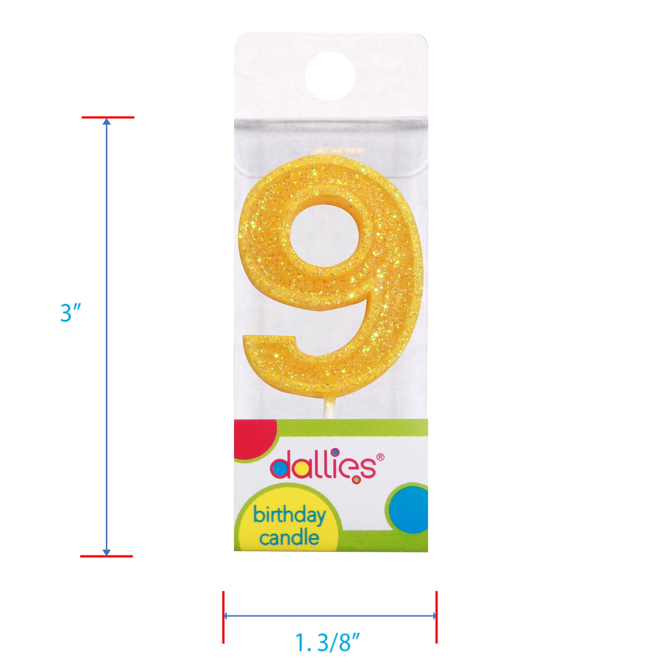 Dallies #9 Birthday Candle W/Pick, Assorted Colors with Polka Dots or Glitter, 1.8 in, 1ct