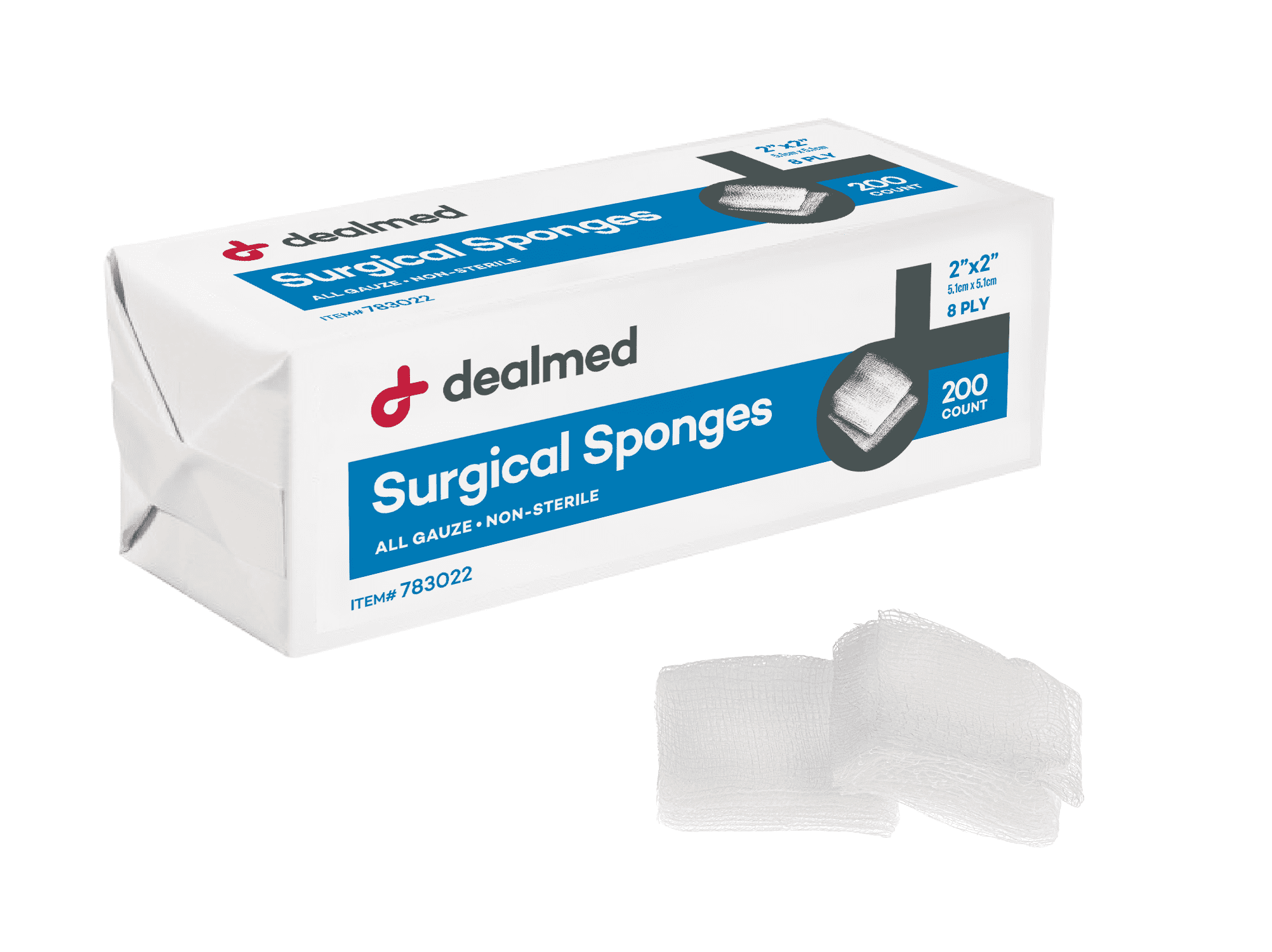 Dealmed 2′ x 2′ Surgical Sponges, 8-Ply Absorbent Gauze for Prepping, Cleaning, Wound Dressing, and First Aid Kits, 200 Count (25 Pack)