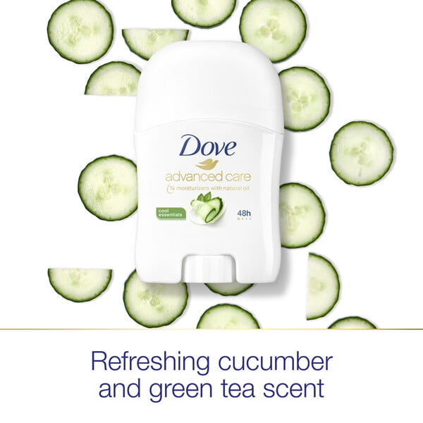Looking for a great travel-sized deodorant? Infused with the fresh fragrance of crisp cucumber and honeydew melon blended with green tea, Dove Advanced Care Cool Essentials Antiperspirant Deodorant Stick is perfect if you’re looking for a long-lasting, invigorating and fresh scent. It’s also a great choice if you’re looking for a deodorant for sensitive skin. With an alcohol-free formula that’s kind to skin, this deodorant helps to relieve the irritation that shaving can cause. Dove antiperspirant deodorant, enriched with our signature 1/4 moisturizers with natural oil, cares for your delicate underarm skin leaving your underarms feeling healthy and protected. As much as it cares for your skin, this deodorant for women doesn’t compromise on effective antiperspirant protection. Keeping you fresh, this gentle deodorant protects from sweat and odor for up to 48-hours. For best results, apply this Dove antiperspirant deodorant to dry skin after showering and enjoy fresh, comfortably dry skin from morning to night. Dove is certified cruelty-free by PETA because we believe that real beauty is cruelty-free. Were on a mission to help women raise their self-esteem because we believe beauty should be a source of confidence, not anxiety. Dove Antiperspirant Deodorants deliver effective underarm protection and are kind to skin, so women can be free of underarm inhibitions and live beautifully unselfconsciously.