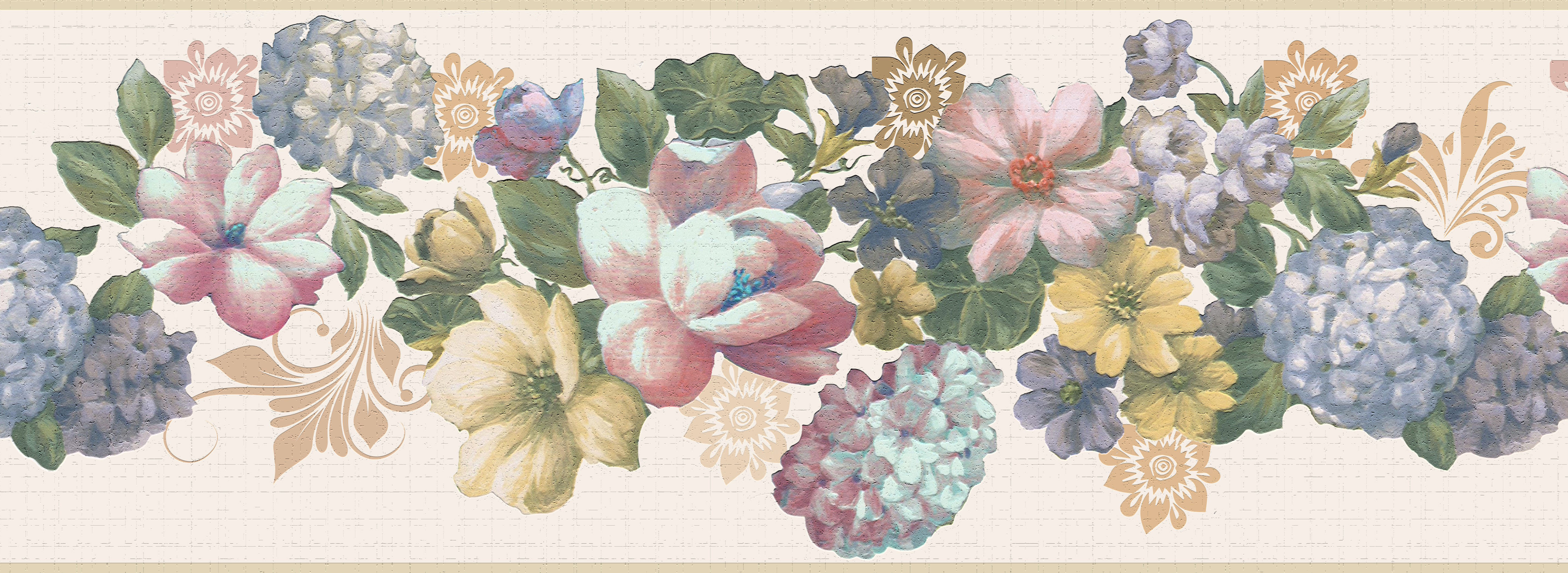 Dundee Deco’s Peel and Stick Wallpaper Border – Floral Green Yellow Purple Flowers on Vines Wall Border Retro Design, 15 ft x 7 in, Self Adhesive