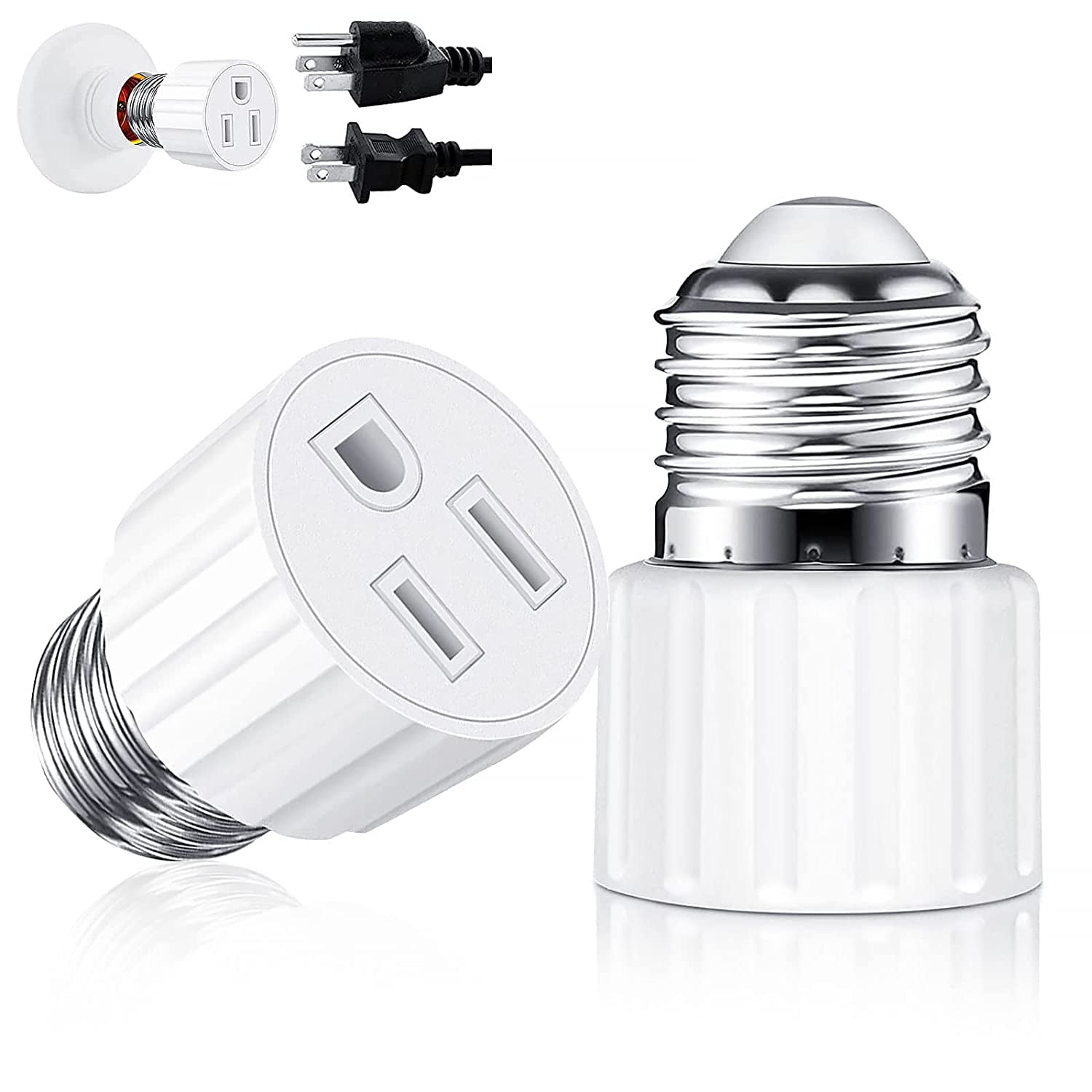 E26/E27 3 Prong Light Bulb Socket Adapter, Polarized Light Socket Outlet, UL Listed Light Socket to Plug Adapter Socket Converter, Light Bulb Plug Adapter for Patio, Garage, Porch (2-Pack)
