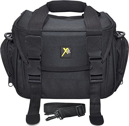 Package Includes: Super Durable Photo/Video Padded Camera Carrying Case Specs Card Product Description: Professional Look. Sleek Fashion Design Shock Proof Material Sturdy construction Water Resistant Multiple Dividers for custom fit Removable shoulder strap Carrying handle 3 side pockets Webbed inside pocket Inside dimension : 9 1/2?(W) X 5 1/2?(D) X 5 1/2?(H) Outside dimension : 12 1/2?(W) X 7?(D) X 7 1/2?(H) Lifetime Manufacturer Warranty.Extremely Durable Pro Camera Carrying Bag Case For Canon EOS Rebel T7i SL2 77D