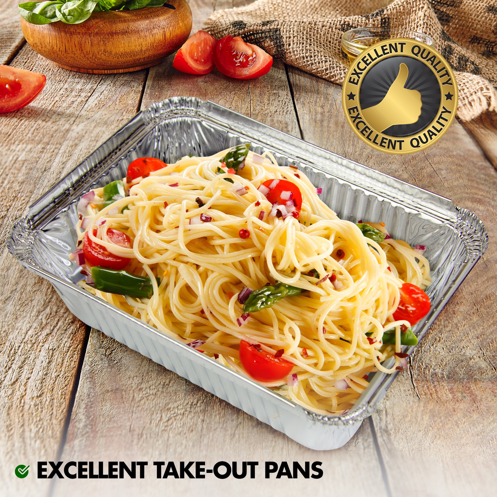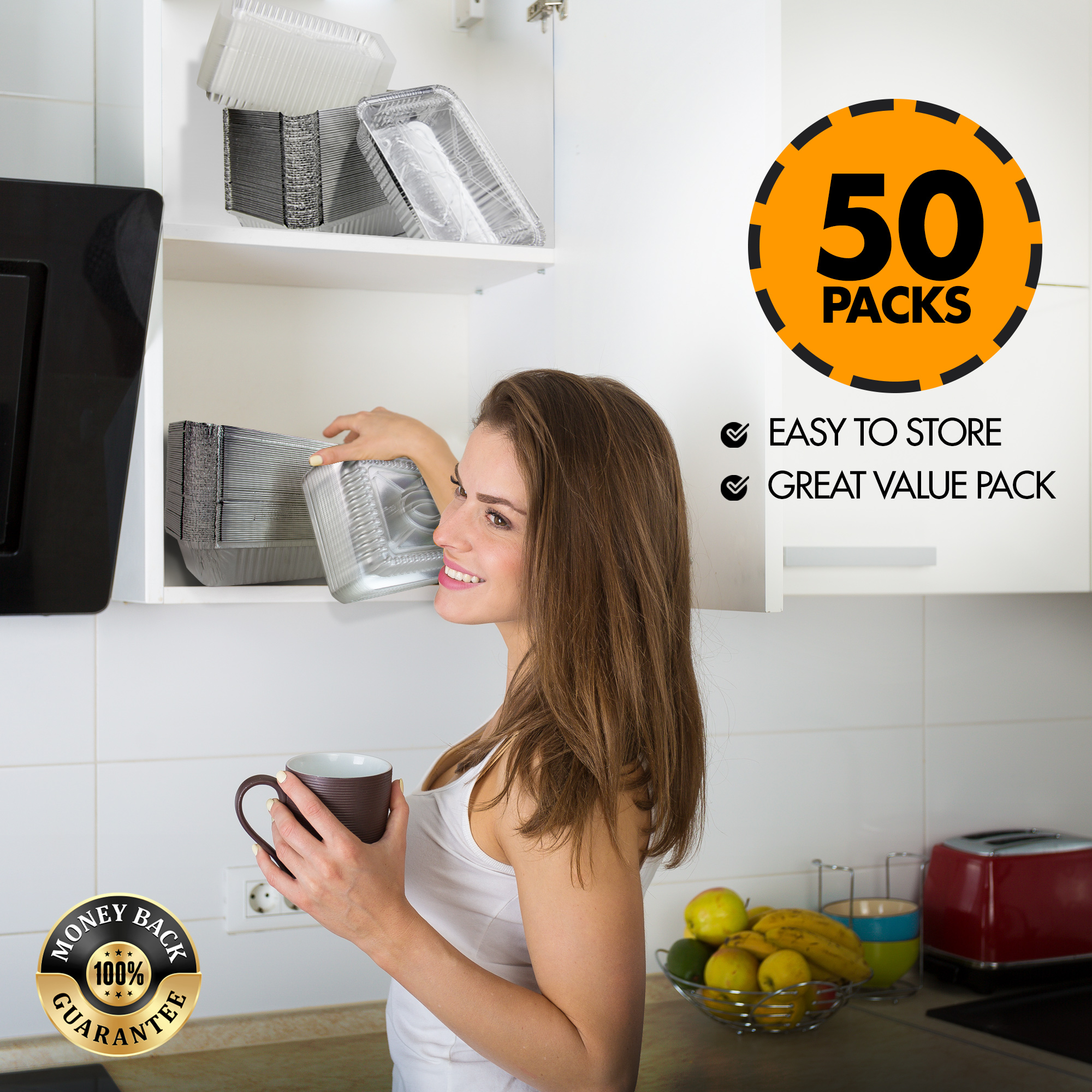 - 50 pans and 50 lids, perfect for baking or reheating food in the oven as well as storing left over food in fridge or freezer.