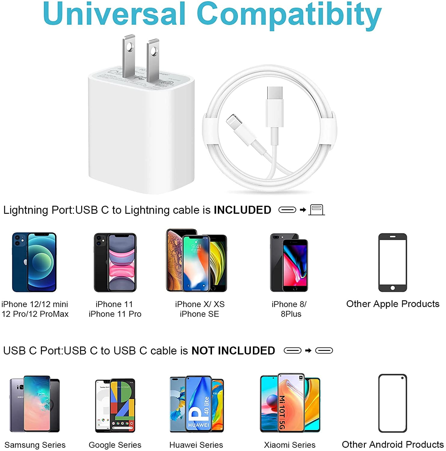 I Phone Fast Charger equipped with 20W PD 3.0 USB Type C power delivery wall plug, PD 3.0 Quick-Charge USB C port provides Max 20W output power,