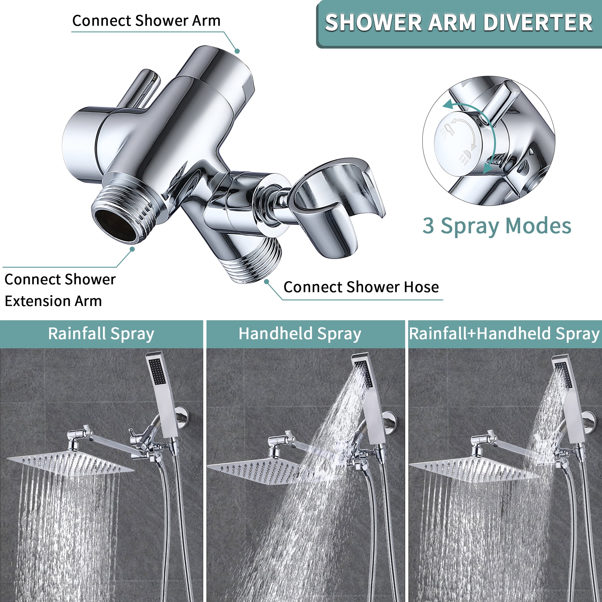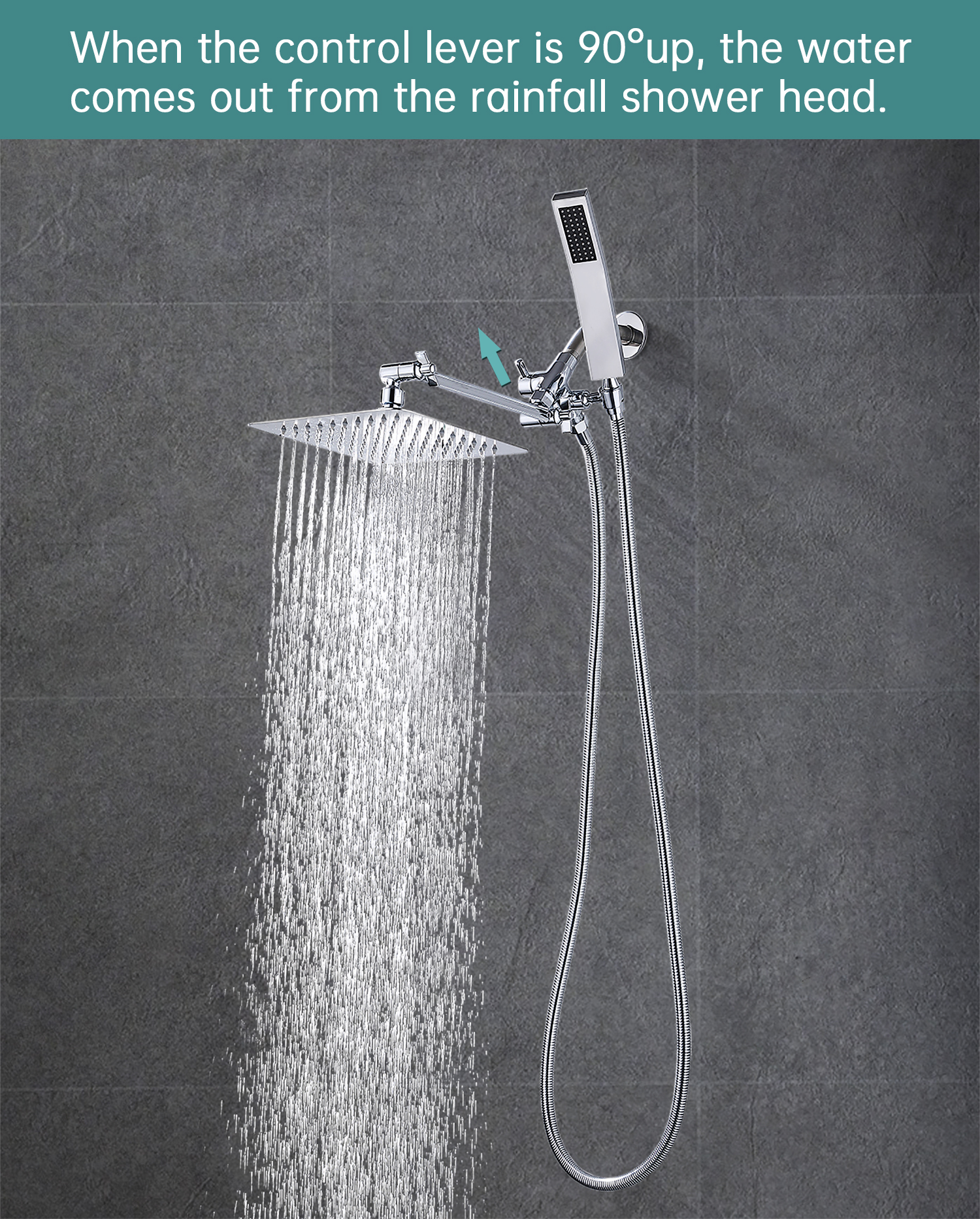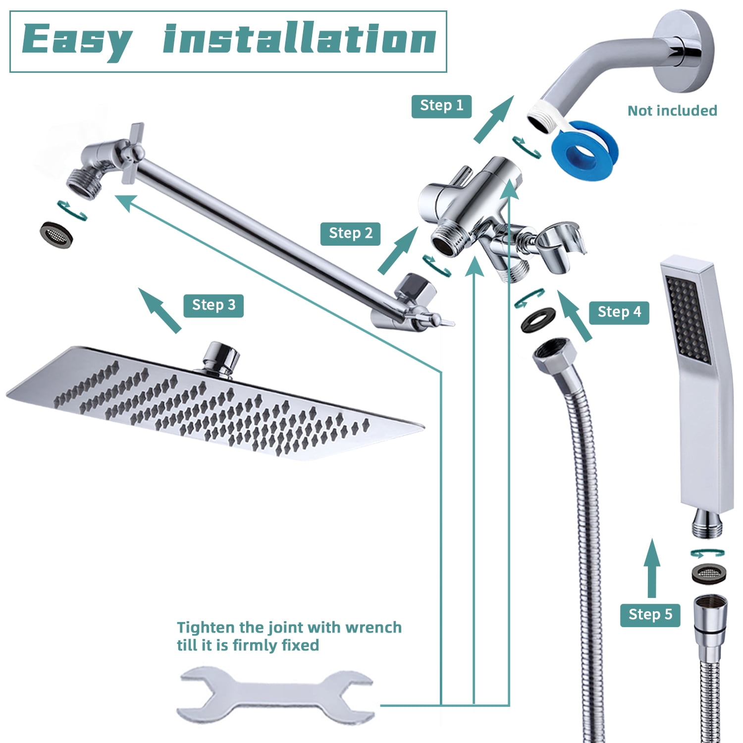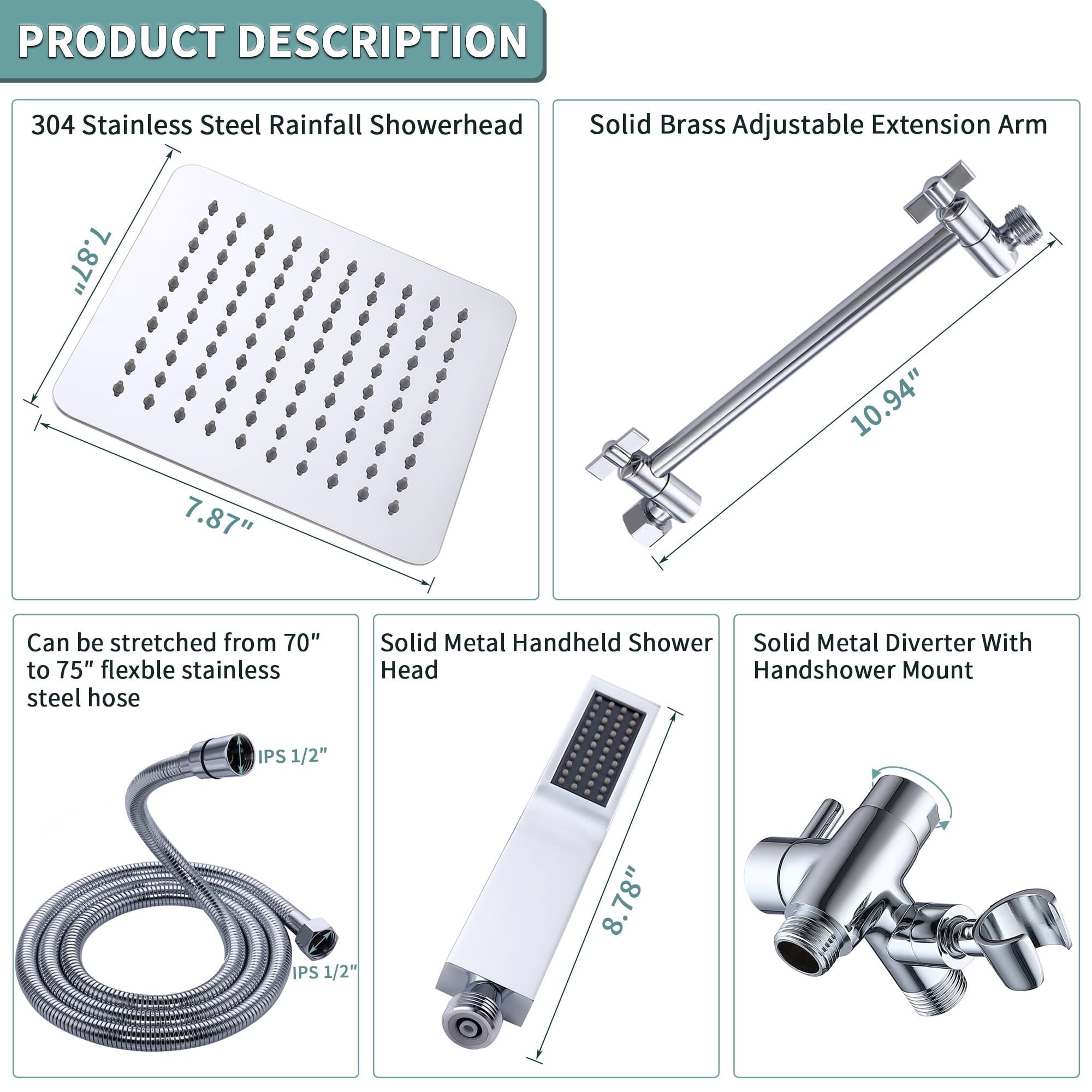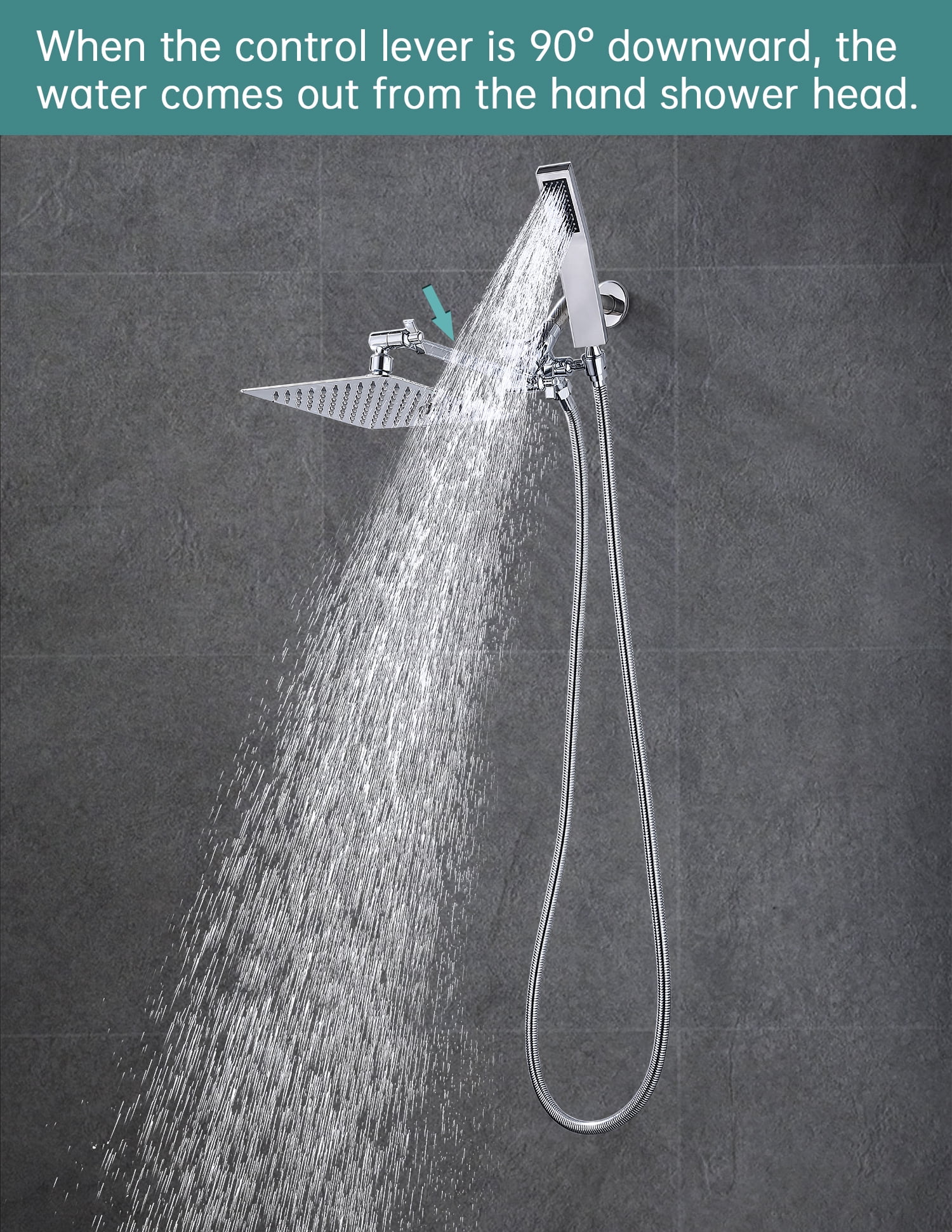 G-Promise All Metal Dual Square Shower Head Combo, 8 ‘Rain Shower Head, Handheld Shower Wand With Extra Long Flexible Hose, Adjustable Extension Arm (Polished Chrome)