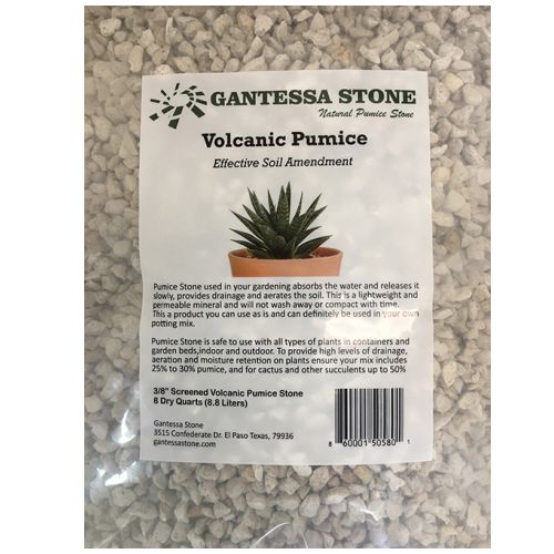 - Pumice for plants 3/8" screened and eight quarts per bag.