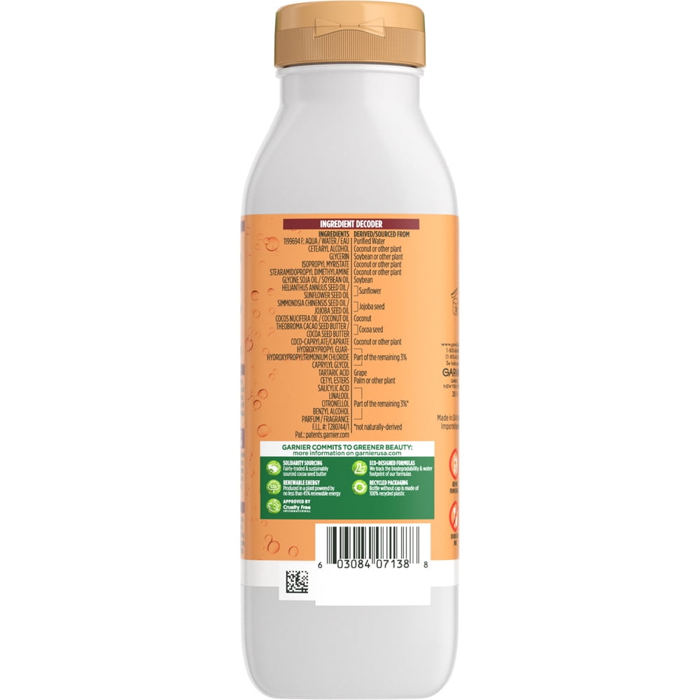 What’s your hair care made of? New Fructis Treats Shampoos & Conditioners made with at least 96% naturally derived ingredients*, bursting with super fruits, made to nourish hungry hair. Fructis Treats says YES to Cocoa Butter Extract, NO to Silicones, YES to Nourish, NO to Parabens, YES to Vegan Formula with no animal derived ingredients, for restored curls with no weighdown. Hungry for more? Try our Treats Mask, 3 Ways to Enjoy: 1. Hair Mask 2. Conditioner 3. Leave In Treatment. Cleanse and restore dry curly hair. *We consider an ingredient to be naturally derived if it is unchanged from its natural state or has undergone processing yet still retains greater than 50% of its molecular structure from its original plant or mineral source. This formula consists of 97% naturally derived ingredients. The remaining ingredients constitute 3% of the formula to ensure sensoriality and preservation.