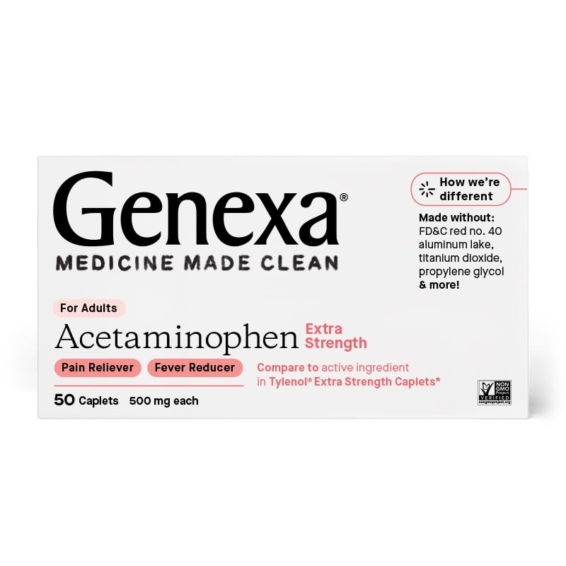Genexa Extra Strength Acetaminophen Pain Relief & Fever Reducer Caplets, 500 mg, 50 Ct