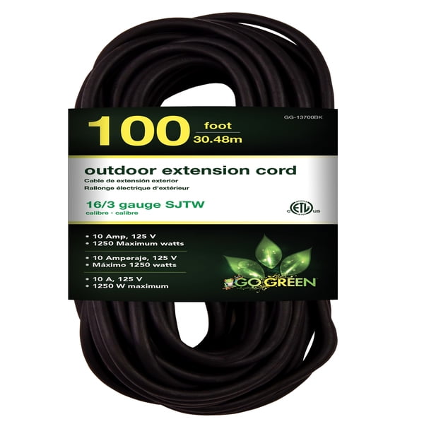 GoGreen Power GG-13700BK 16/3 100’ SJTW Outdoor Extension Cord, Black, 100 Ft
