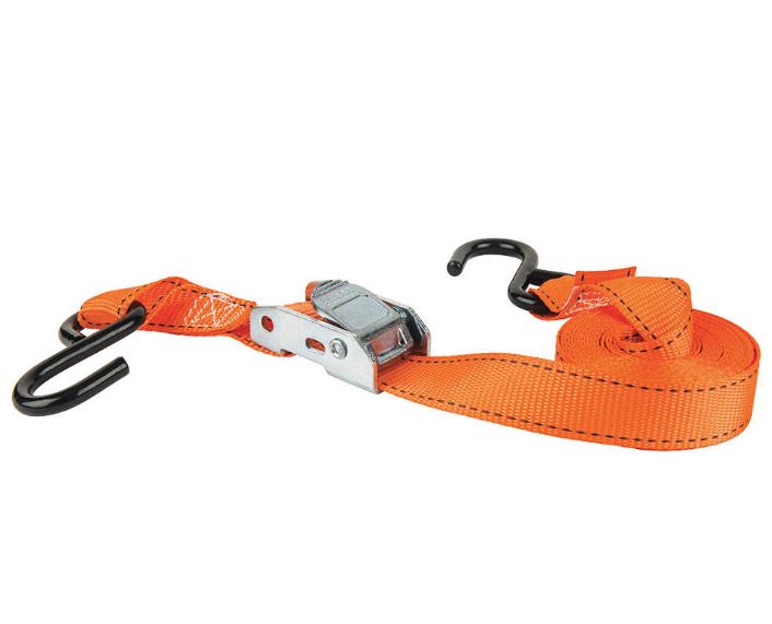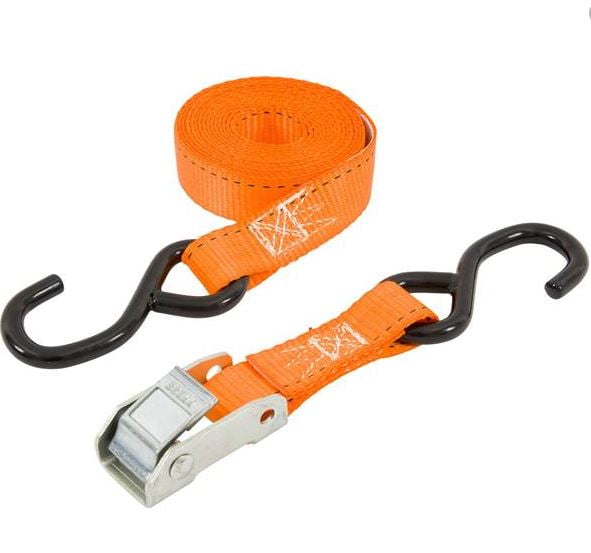 Keep any light and delicate cargo safely secured during transportation with the HyperTough 10′ x 1" Cam Buckle Tie-Down. The cam buckle tie-down features a high quality, durable, high-visibility bright orange nylon 1" webbing and steel cam buckle for a tight and secure hold. A vinyl-coated S-hook is attached at each end and can be affixed to rings, hooks, anchors, D-Rings, and other cargo anchors. The operation is simple and straightforward. Simply, open the cam buckle mechanism latch, run the strap through the bottom of the cam buckle, pull the strap to the desired tension and close cam buckle to secure strap. The tie-down is compact, portable and easy-to-use. It has a working load limit of 400 lbs. and 1,200 lbs. break strength to deliver optimal performance. The HyperTough Cam Buckle Tie-Down is ideal for securing kayak, bike, canoe, luggage, outdoor equipment, and much more.