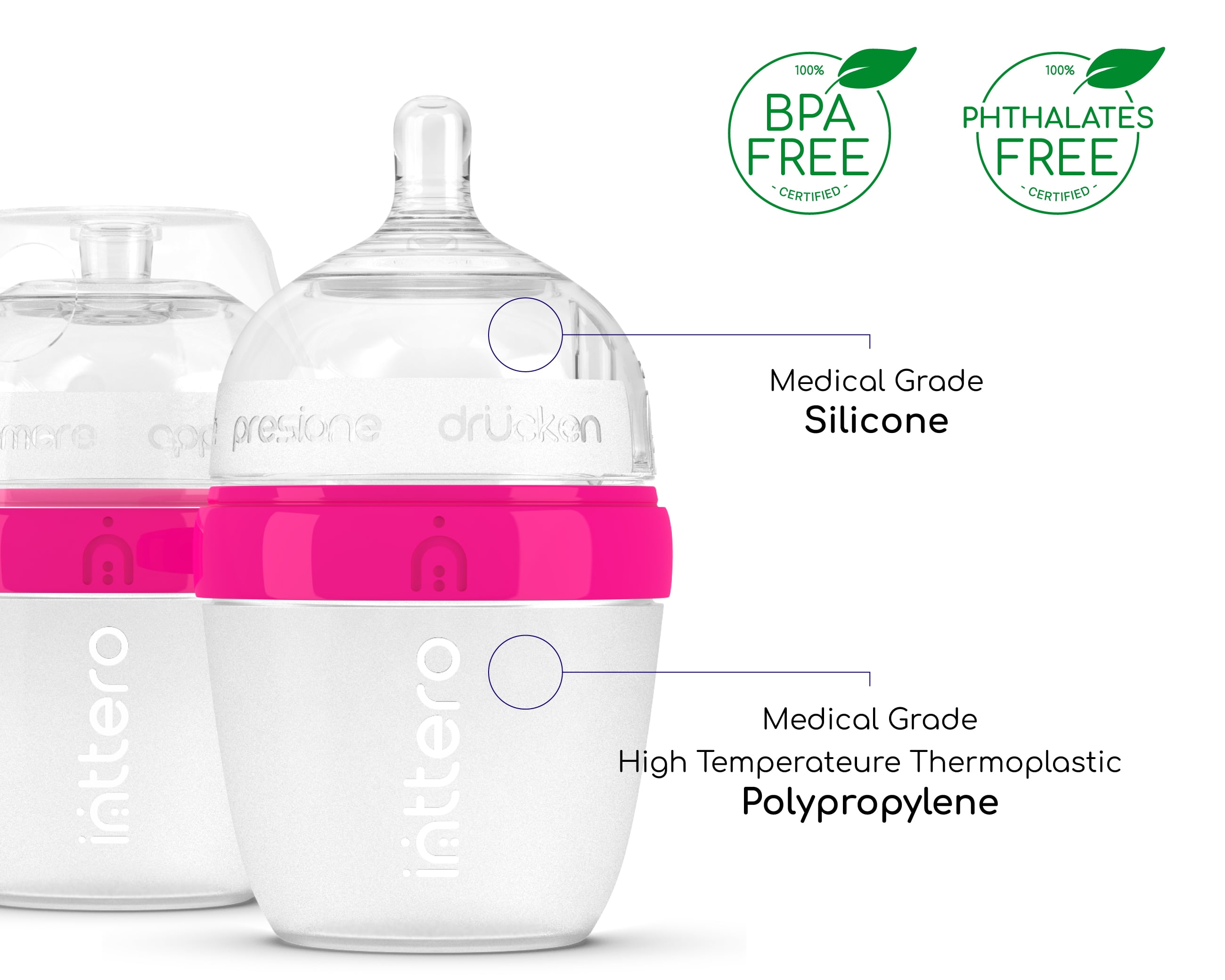 Inttero Pre-loadable Anti-Colic Baby Bottles, allow you to completely prepare the bottles ahead of time, and be always ready to feed your baby in just 2 seconds. At the first signs of your baby’s hunger, simply push and shake, and a perfectly blended formula will be ready to start feeding your beautiful baby, at any time of the day …or night.