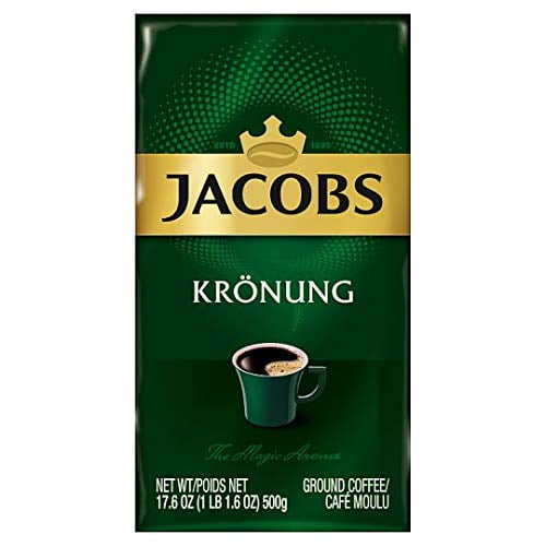 Jacobs Kroenung Is the best of JACOBS Coffee. Finest premium coffee with the JACOBS Aroma. High quality coffee beans selected from the best regions blended to compose this fine coffee. Find out for yourselves why this coffee is Number One Best Seller! Imported from Germany. The special taste and aroma of Jacobs coffee brand today carries the inspiration of its creator Johann Jacobs. He opened a coffee and tea shop in Bremen, Germany, in 1895. There, he began roasting his own coffee, enabling him “to treat each variety according to its character and the structure of the beans, thus giving my coffee its own special tasteJacobs Kronung Premium Ground Coffee 17.6oz (500g) From Germany